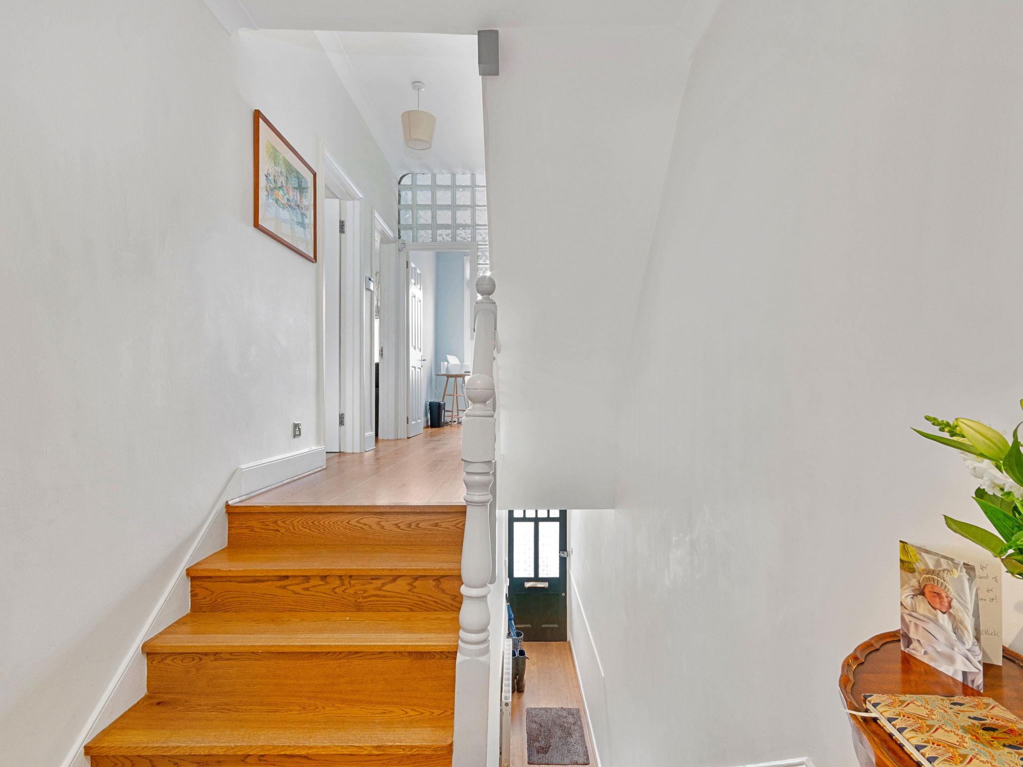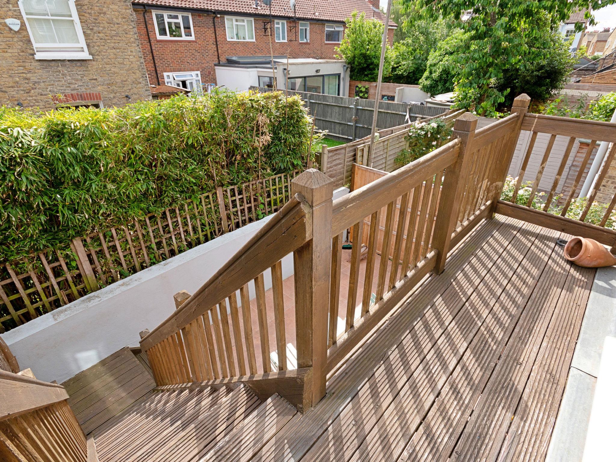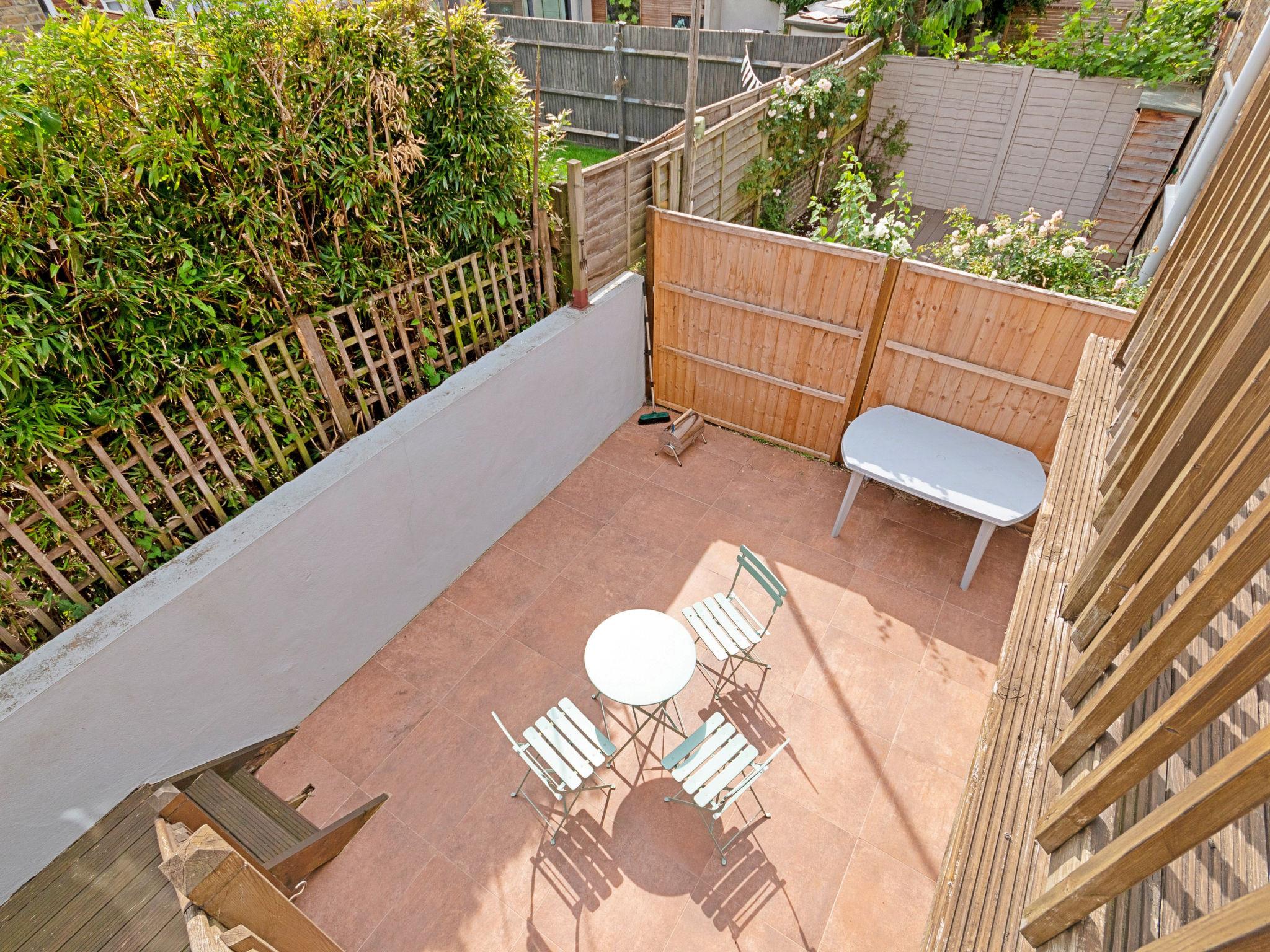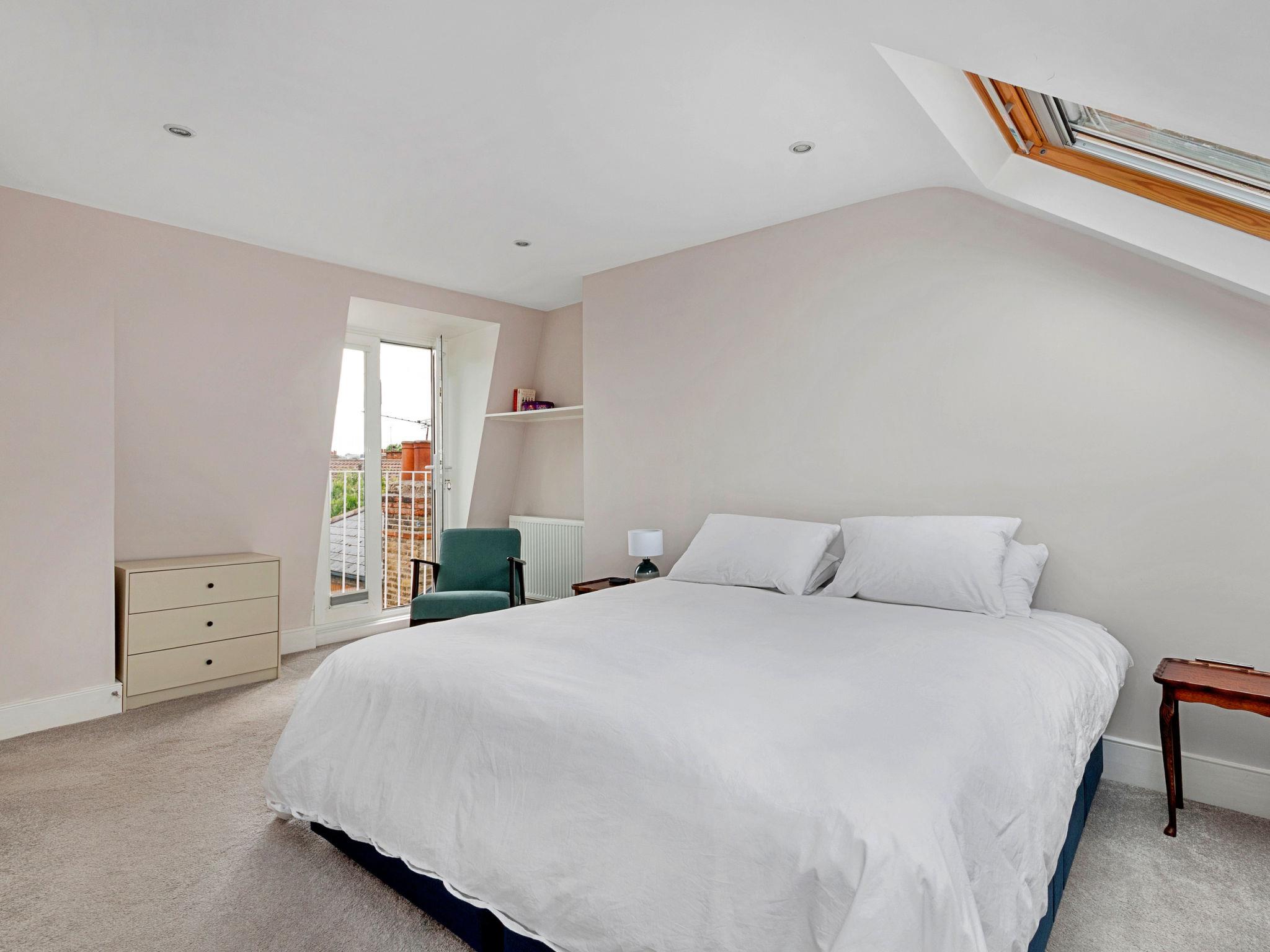 London: Apartment block. For shared use: property (fenced). Private: garden.
