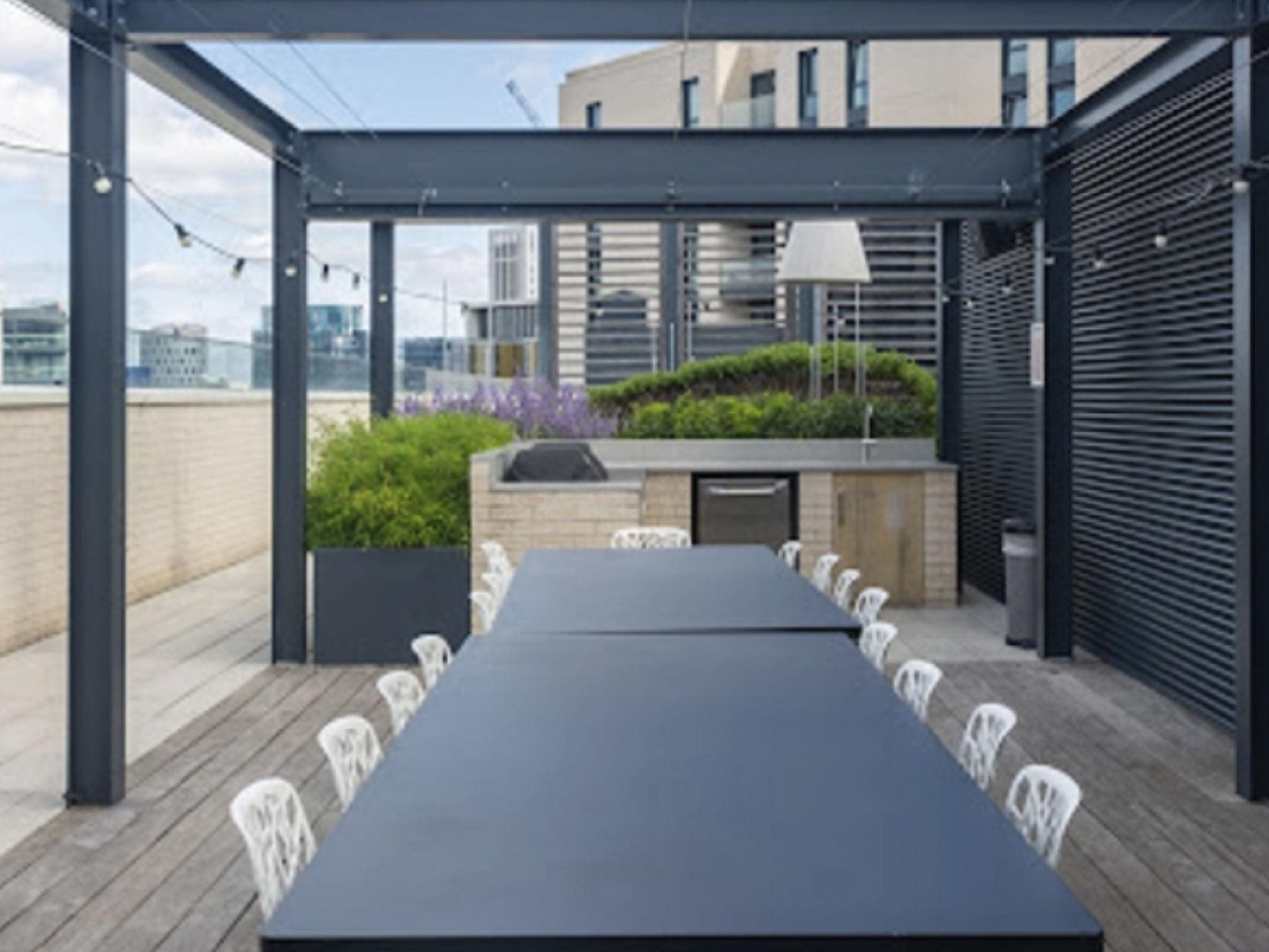 Modern apartment block. In the centre of Wembley Park, in the district Brent, North West London, excellent location: right in the centre but still quiet, traffic calmed area. In the complex: reception, lounge, internet access, fitness room (extra). Roof terrace, central heating system, washing machine, tumble dryer. Room cleaning weekly (included). Public car park, extra. Shop, grocery, supermarket 350 m, shopping centre 300 m, restaurant 380 m, bar 200 m, bakery 200 m, café 100 m, pub garden 200 m, bus stop "Wembley Arena" 200 m, railway station "Liverpool Street Station" 15 km, underground station "Wembley Park Station" 570 m. Nearby attractions: Wembley Stadium 200 m, Wembley Designer Outlet 500 m, Wembley Arena 200 m. Please note: baby equipment on request (extra). Object suitable for 4 adults. The apartment is located in a zone with limited traffic. The photograph shows a typical example. The holiday properties may differ in living space, floorplan, equipment and furnishing.