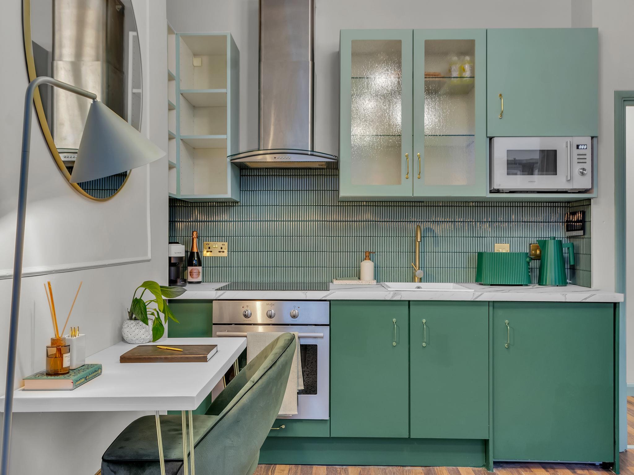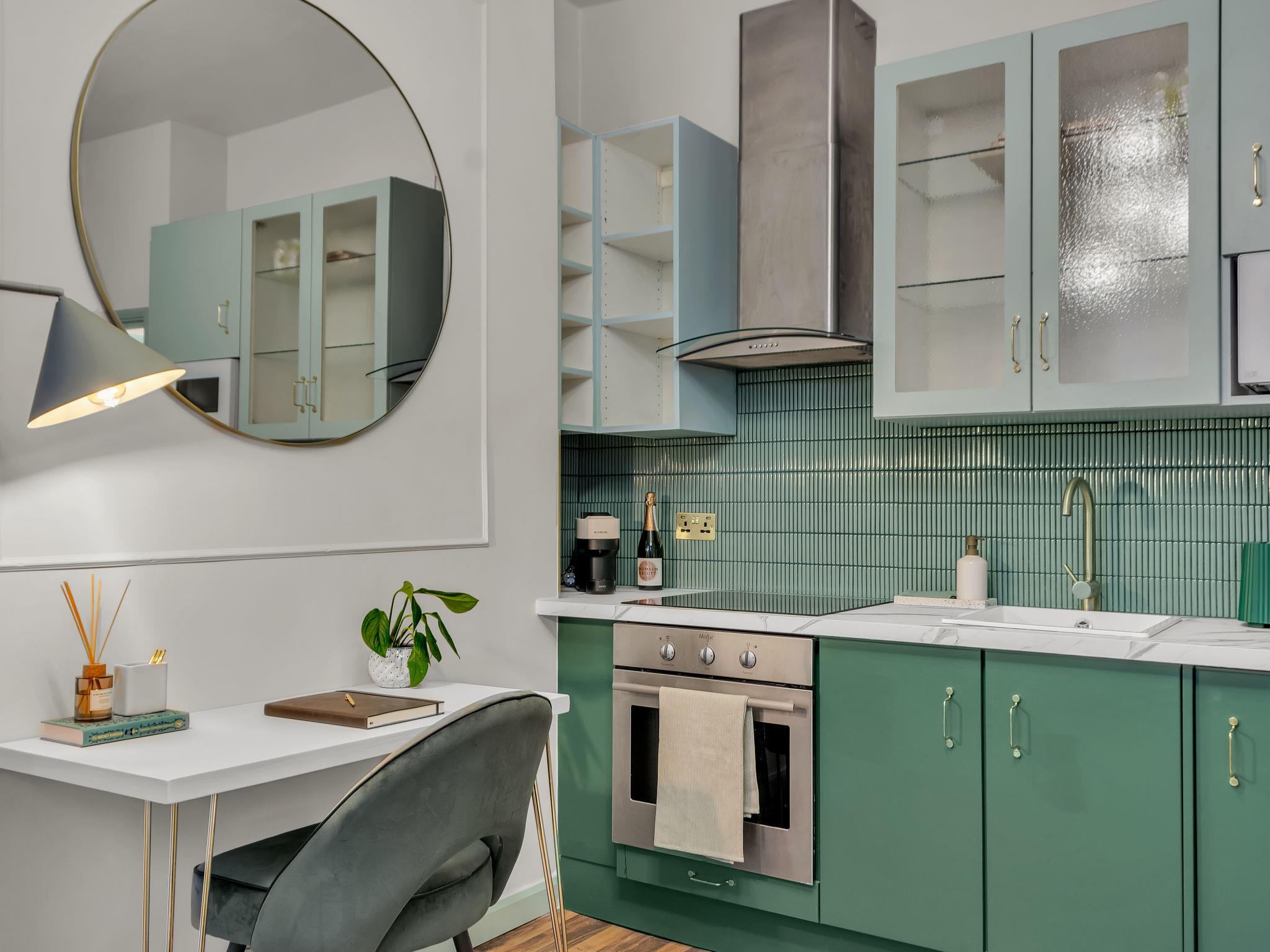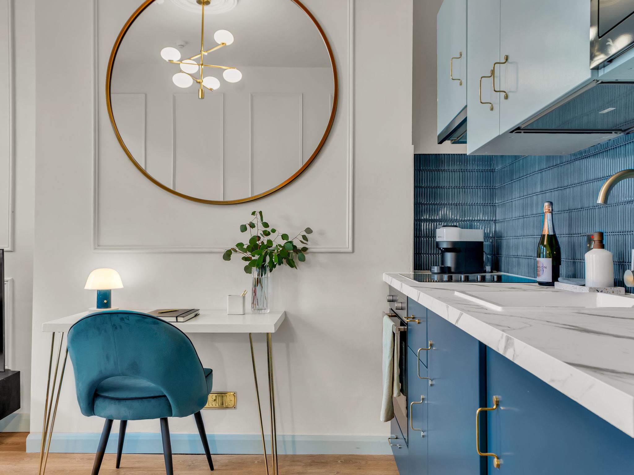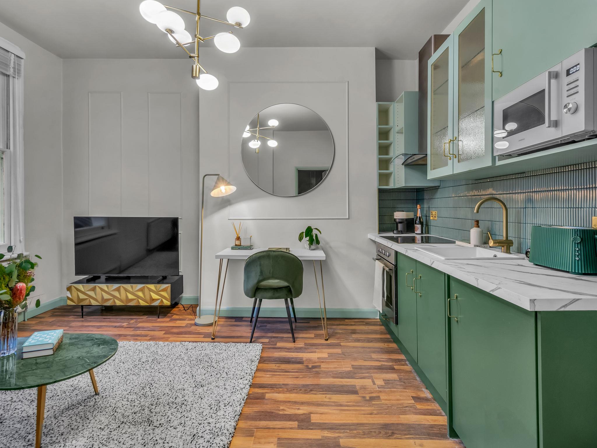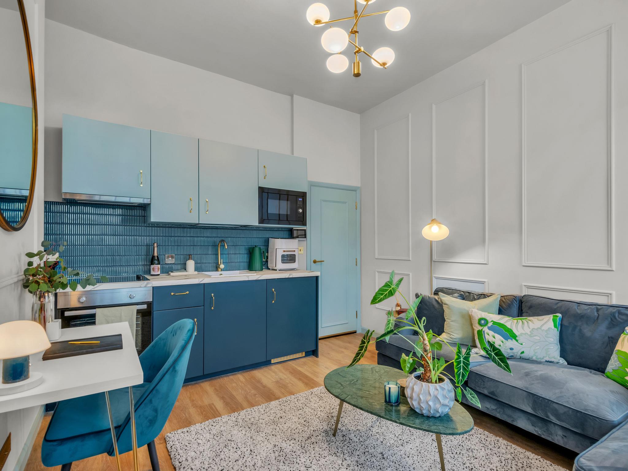 "Kensington Heights", 2-room apartment 25 m2. Object suitable for 2 adults. Beautiful and stylish furnishings: open living room with shower/WC and cable TV (flat screen). 1 double bedroom with 1 double bed. Kitchen-/living room (oven, 4 ceramic glass hob hotplates, toaster, kettle, microwave). Facilities: Internet (WiFi, free). Please note: non-smoking house. TV only EN. The property is one of a type of property or apartment.
