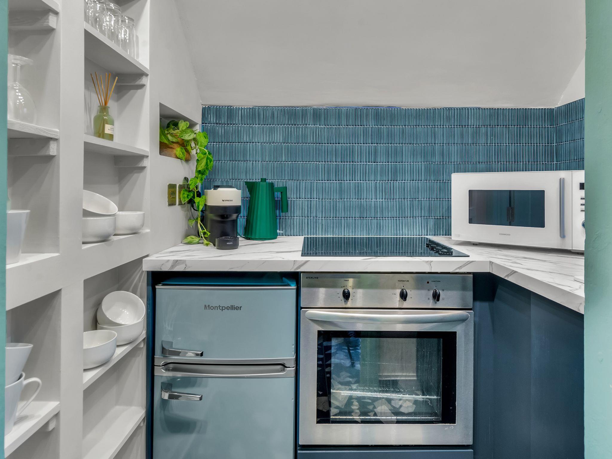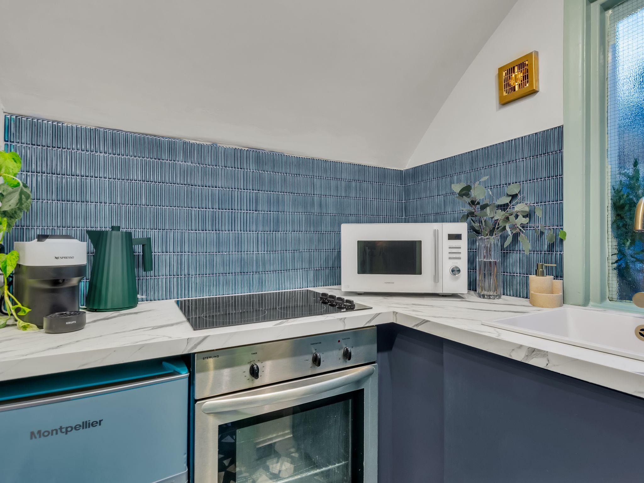 "Kensington Lower Studio", 1-room studio 25 m2. Object suitable for 2 adults. Beautiful and tasteful furnishings: open living/sleeping room with 1 double bed, shower/WC and cable TV (flat screen). Small, open kitchen (oven, 4 ceramic glass hob hotplates, toaster, kettle, microwave, freezer). Facilities: hair dryer. Internet (WiFi, free). Please note: not suitable for small children. TV only EN. The property is one of a type of property or apartment.