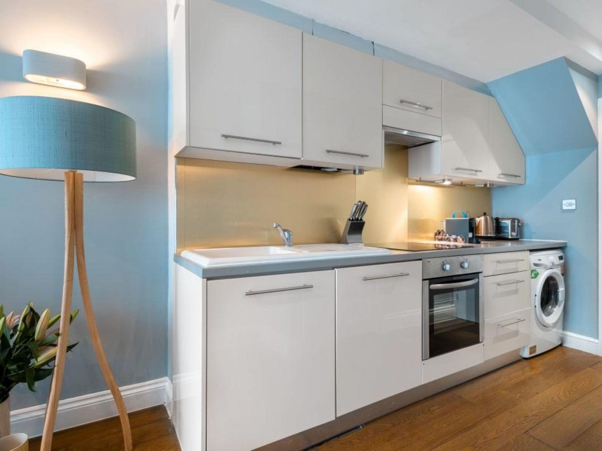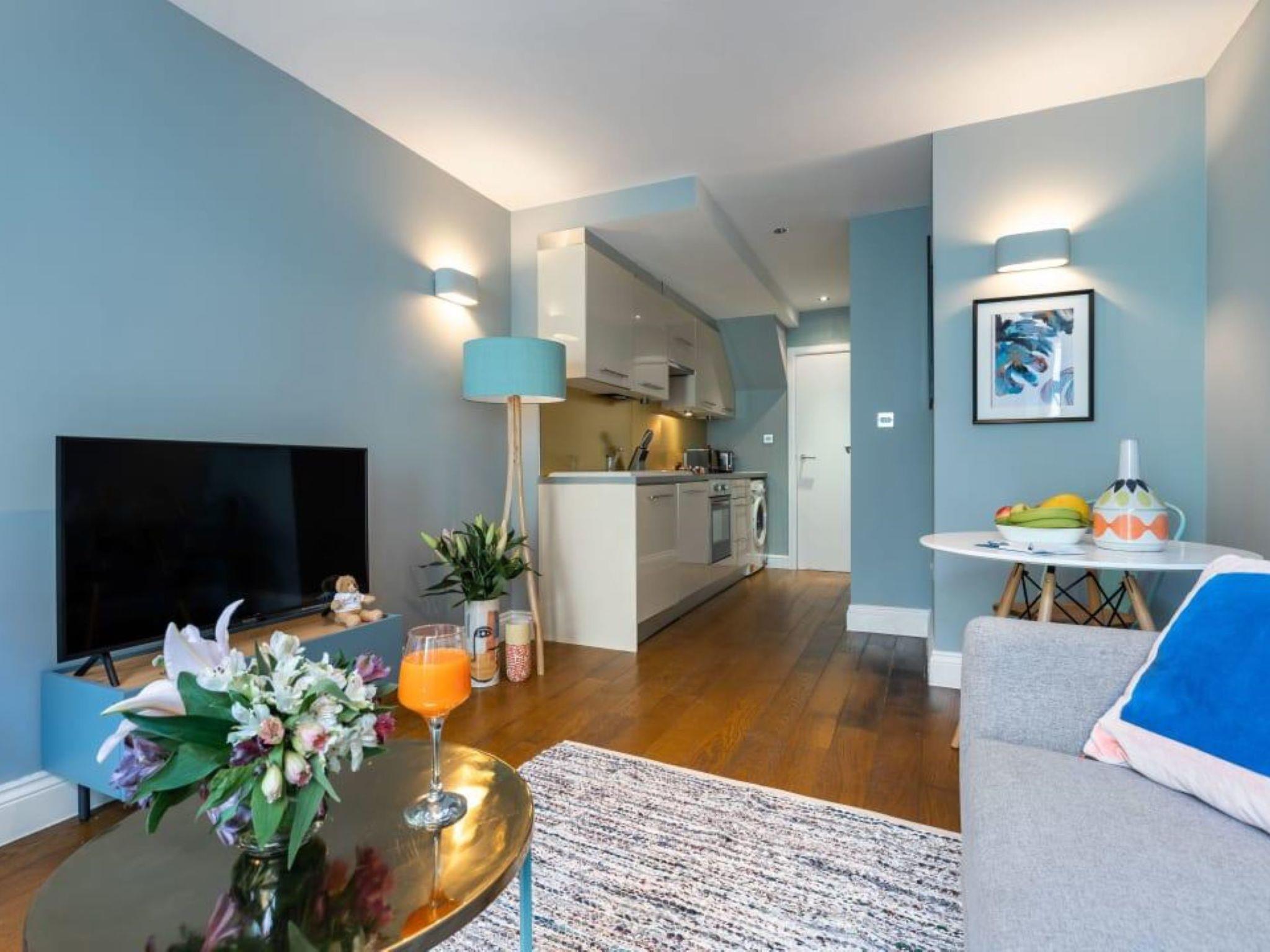 "Lenna Gdns 1 Bed", 2-room apartment 40 m2. Comfortable and tasteful furnishings: open living/dining room with dining table and digital TV. 1 double bedroom with 1 double bed. Open kitchen (oven, 4 ceramic glass hob hotplates, toaster, kettle, microwave, freezer). Shower/WC. Heating. Facilities: washing machine, hair dryer. Internet (WiFi). Please note: non-smoking house. TV only EN. Smoke alarm. The property is one of a type of property or apartment.