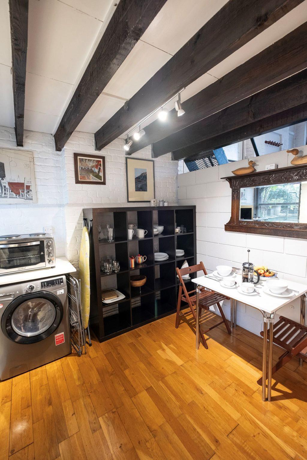 Comfortable apartment house "Holly Lodge Coach House". 5 km from the centre of London, in a quiet position, located by a road. Private: patio, public parking on the road. Shop, grocery, restaurant, bar 200 m, bus stop 20 m, railway station "Chiswick" 450 m, underground station "Gunnersbury" 1.9 km. Please note: the owner lives on the same property. The apartment is located near Chiswick Railways station, with trains every 15 minutes to London Waterloo.