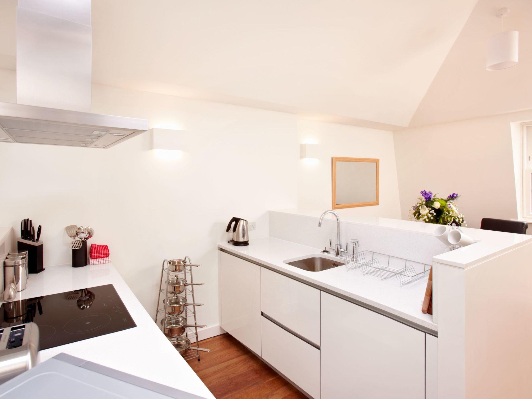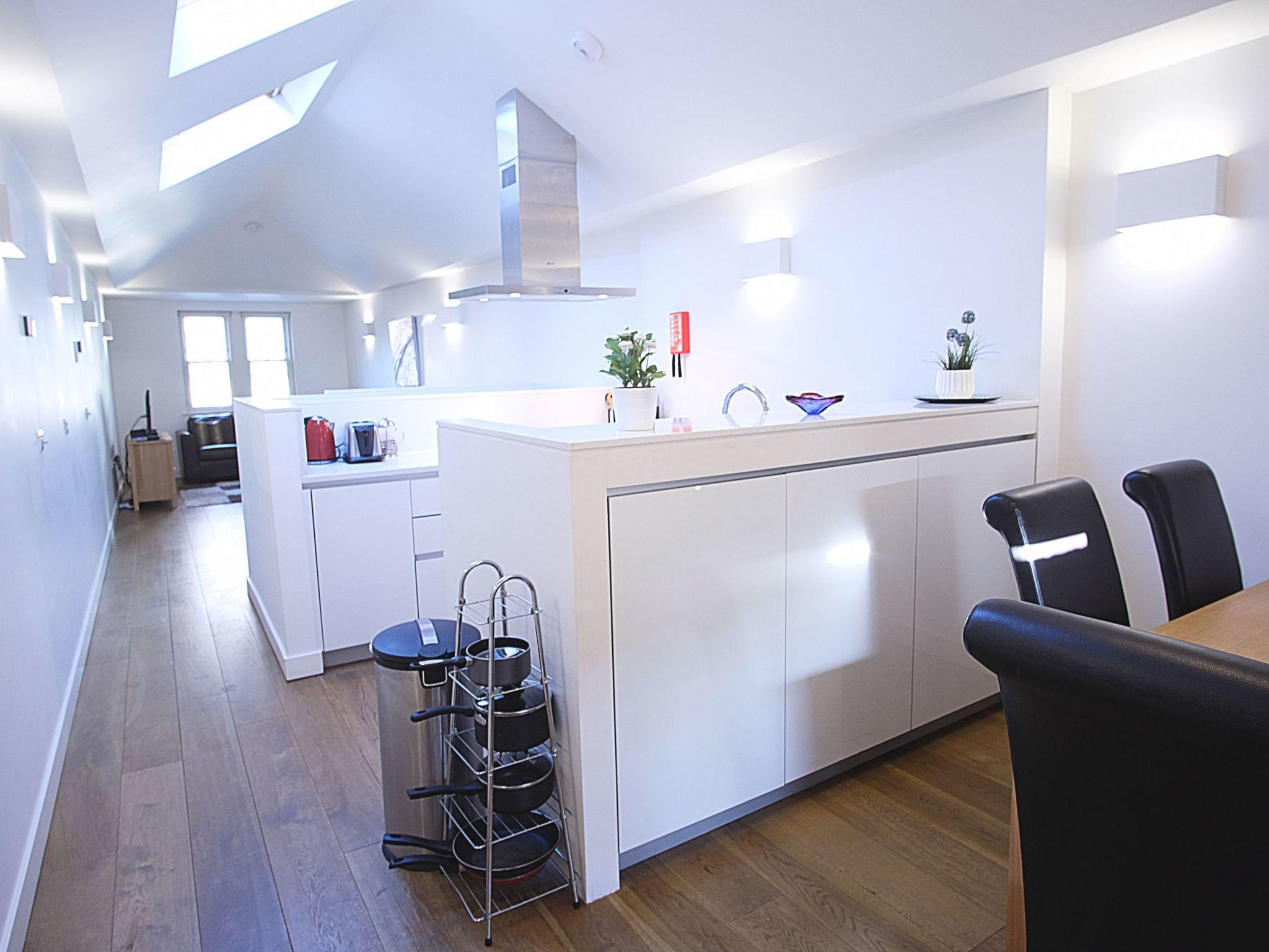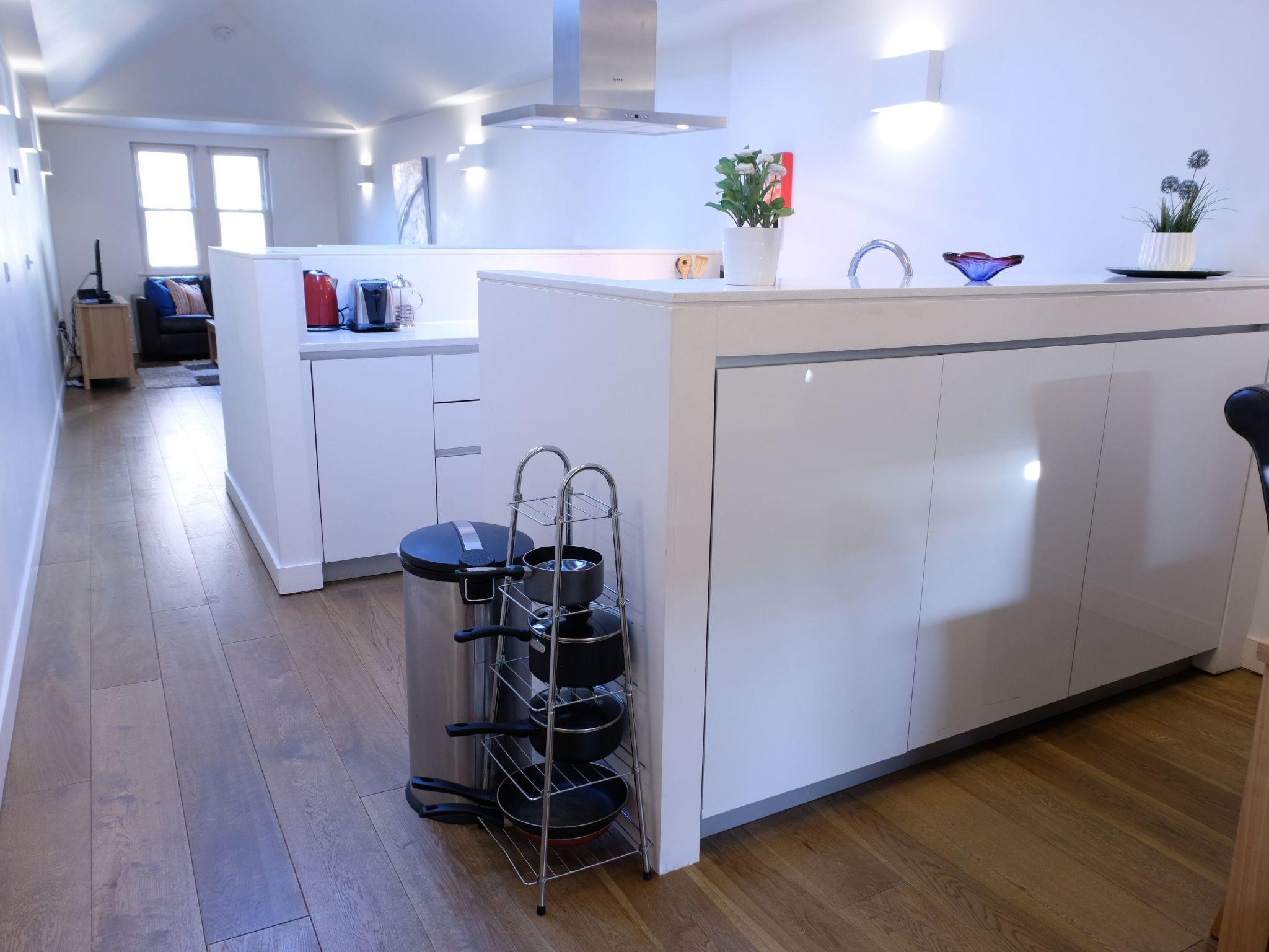 The interior of this apartment is thoughtfully equipped to cater to all your needs. Underfloor heating spreads warmth throughout the space, ensuring a cozy atmosphere whatever the weather outside. Maintenance of your wardrobe is a breeze with the inclusion of a washing machine and clothes dryer, both provided for your exclusive use. The kitchen is a highlight, boasting an induction hob and dishwasher, making cooking and cleaning as efficient as possible. An electric kettle and fan are also on hand to enhance your living experience.