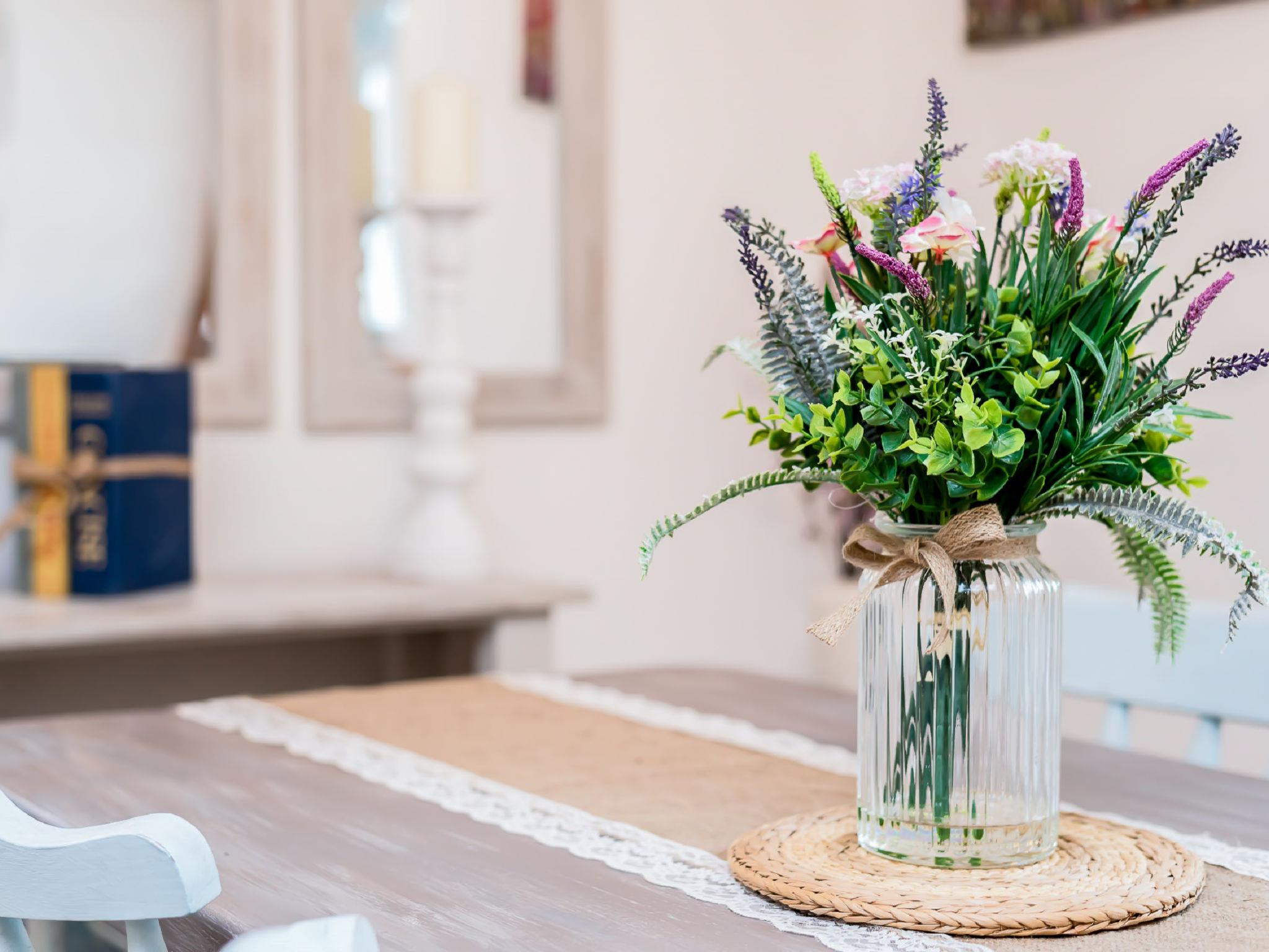 3-room cottage 82 m2. Spacious and bright, very comfortable and tasteful furnishings: living/dining room with dining table, digital TV, flat screen, DVD and electric heating. 1 double bedroom with 1 double bed. 1 room with 2 beds. Open kitchen (4 hot plates, oven, dishwasher, microwave, freezer). Exit to the patio. Bath/shower/WC. Terrace furniture, barbecue. Very beautiful view of the sea. Facilities: washing machine, dryer, iron. Please note: non-smokers only. Maximum 1 pet/ dog allowed. TV only EN.