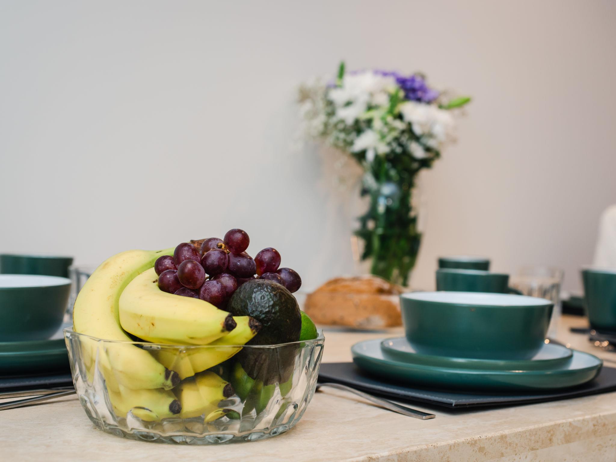 3-room apartment on 1st floor. Comfortable and modern furnishings: open living room with 1 sofabed, dining table and TV (flat screen). 1 double bedroom with 1 double bed. 1 room with 2 beds. Open kitchen (oven, 4 ceramic glass hob hotplates, toaster, kettle, microwave, electric coffee machine). Shower/WC. Heating. Partial view of the sea. Facilities: washing machine, dryer, hair dryer. Internet (WiFi). Please note: non-smoking house. Maximum 1 pet/ dog allowed. TV only EN. Smoke alarm.