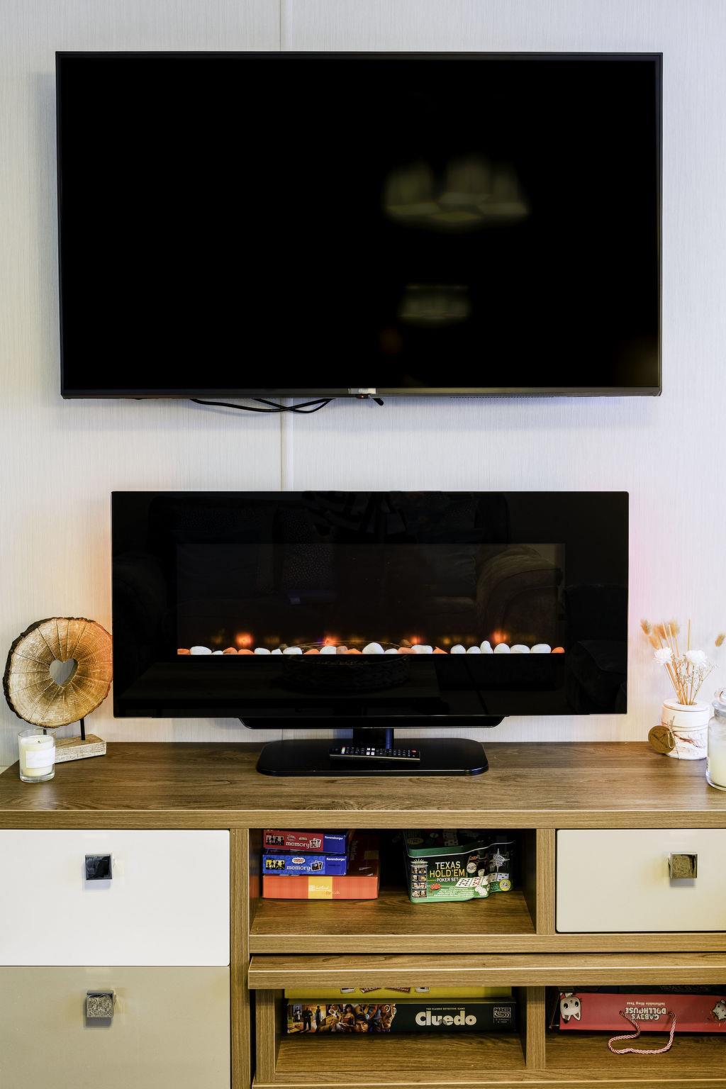 3-room mobile home. Bright, modern and tasteful furnishings: open living/dining room with 1 double sofabed. Exit to the veranda. 1 double bedroom with 1 double bed (1 x 150 cm, length 200 cm). 1 small room with 2 beds (80 cm, length 185 cm). Open kitchen (Gas stove, toaster, kettle, microwave, grill) with dining table. 2 showers/WC. Heating, gas heating, boiler. Terrace furniture. Suitable for families. Air fryer in kitchen.