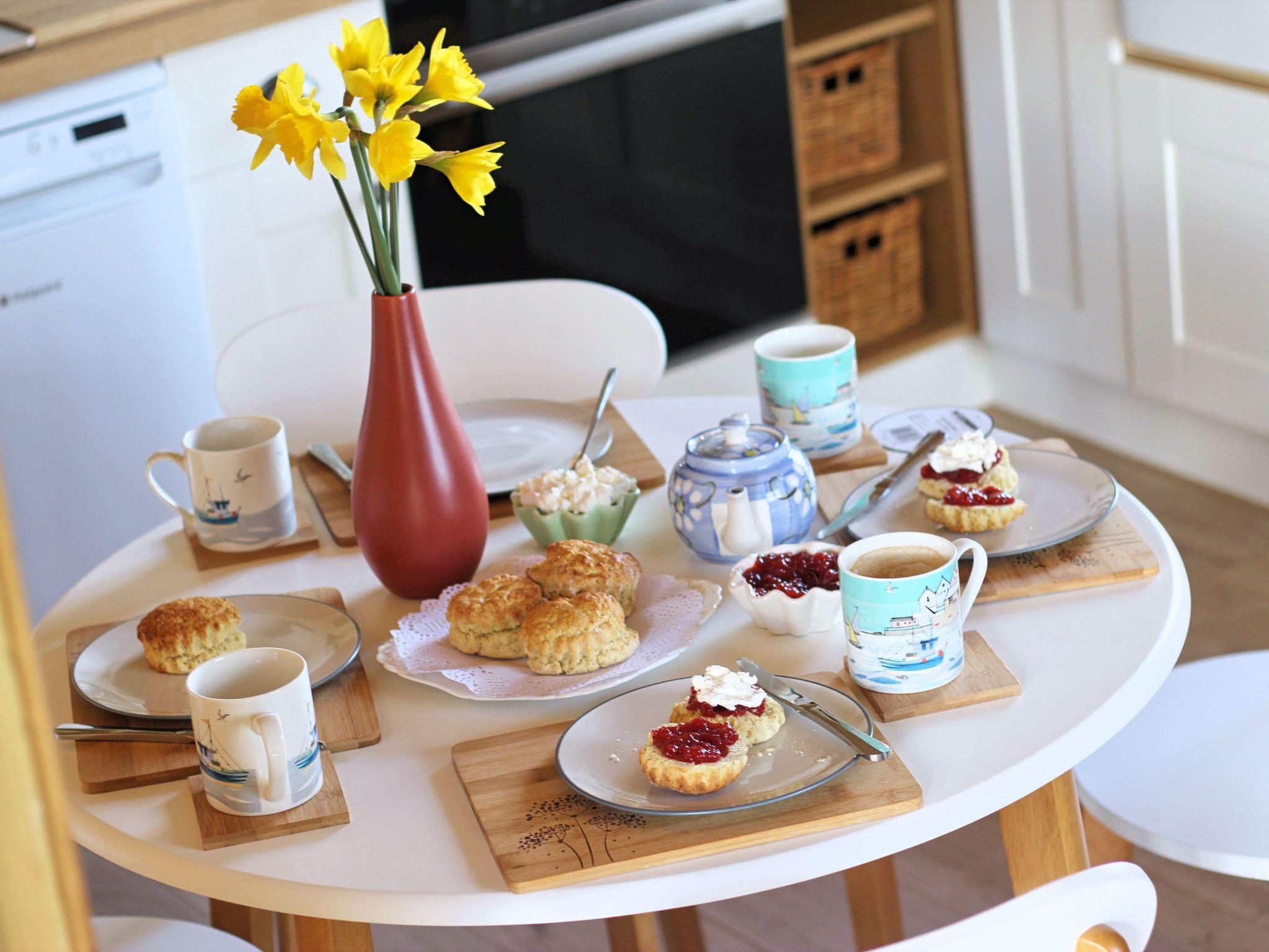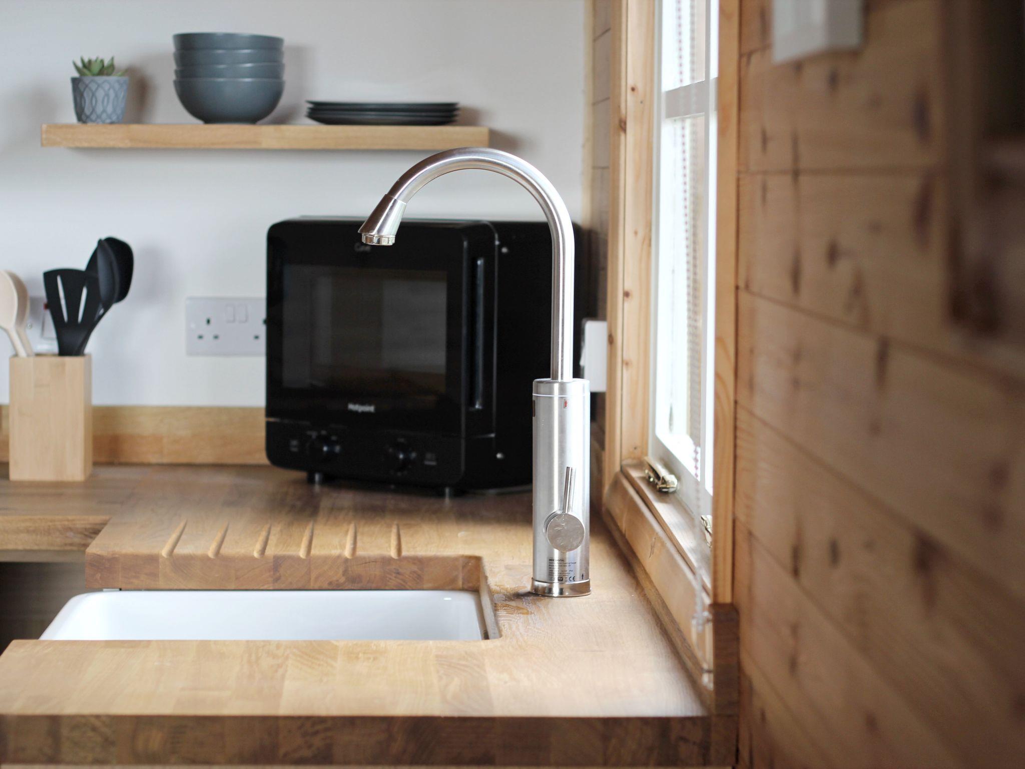 Kitchen: There is a beautiful fully equipped shaker-style kitchen area, including a Belfast butler sink, solid prime-oak worktop, Hotpoint Class 9 oven and induction hob, dishwasher, retro fridge/freezer, microwave, AEG coffee machine (with pods), toaster, electric kettle and everything needed to make you feel at home in West Cornwall.