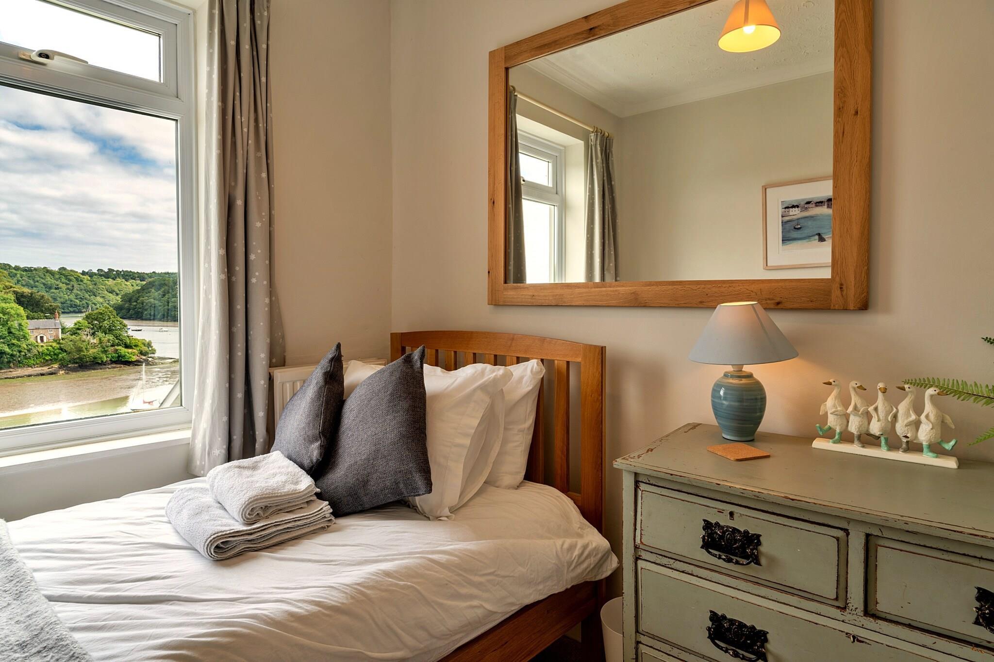 Dette rolige hus med 3 soveværelser er beliggende i Malpas fantastiske naturlige skønhed, og tilbyder gæsterne et ideelt tilflugtssted med en betagende udsigt over tidevandsbækken. Ejendommen har en rummelig stue med brændeovn og et polstret vinduessæde, perfekt til at nyde udsigten. Der er tre velindrettede soveværelser, herunder en super-king, en zip-and-link twin/double, og en single. Huset er også kæledyrsvenligt og byder på op til to hunde og tilbyder et spabad, store haver og grillfaciliteter, hvilket gør det perfekt til udendørs afslapning. Det giver også garageparkering og en EV-oplader for ekstra bekvemmelighed. Huset er ideelt beliggende i den maleriske landsby Malpas, kun 10 minutters kørsel fra den historiske by Truro. Gæsterne kan nyde forskellige aktiviteter, herunder kajaksejlads, fuglekiggeri og naturskønne vandreture. Den nærliggende marina ligger kun et minut væk, og besøgende kan udforske den lokale Heron Inn, gårdbutik og tesalon. Landsbyen er også godt forbundet med busforbindelse til Truro og bådture til Falmouth, St. Mawes og National Trust Trelissick Gardens. Den nærliggende Roseland-halvø og Heritage Coast byder på endnu mere naturlig skønhed og udendørs eventyr. Indvendigt byder det fuldt udstyrede køkken på alt det nødvendige for et ophold med egen forplejning, herunder en ovn, kogeplader, opvaskemaskine og vaskemaskine. Det moderne badeværelse har et traditionelt badekar med bruser, og huset har også et toilet nedenunder.