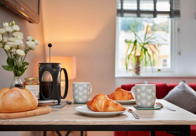 The luxurious apartment tastefully mixes the characterful features of the old building with new and modern interior styling. Decorated to a high standard making for a cosy and relaxing stay. In the living room, the huge windows allow light to stream in to the open-plan kitchen, dining and lounge areas. While Matlock offers many fantastic restaurants, Shaky's Penthouse kitchen is fully equipped to cook up a feast should guests prefer a night in.