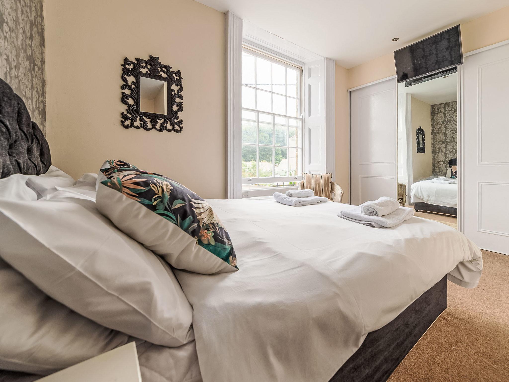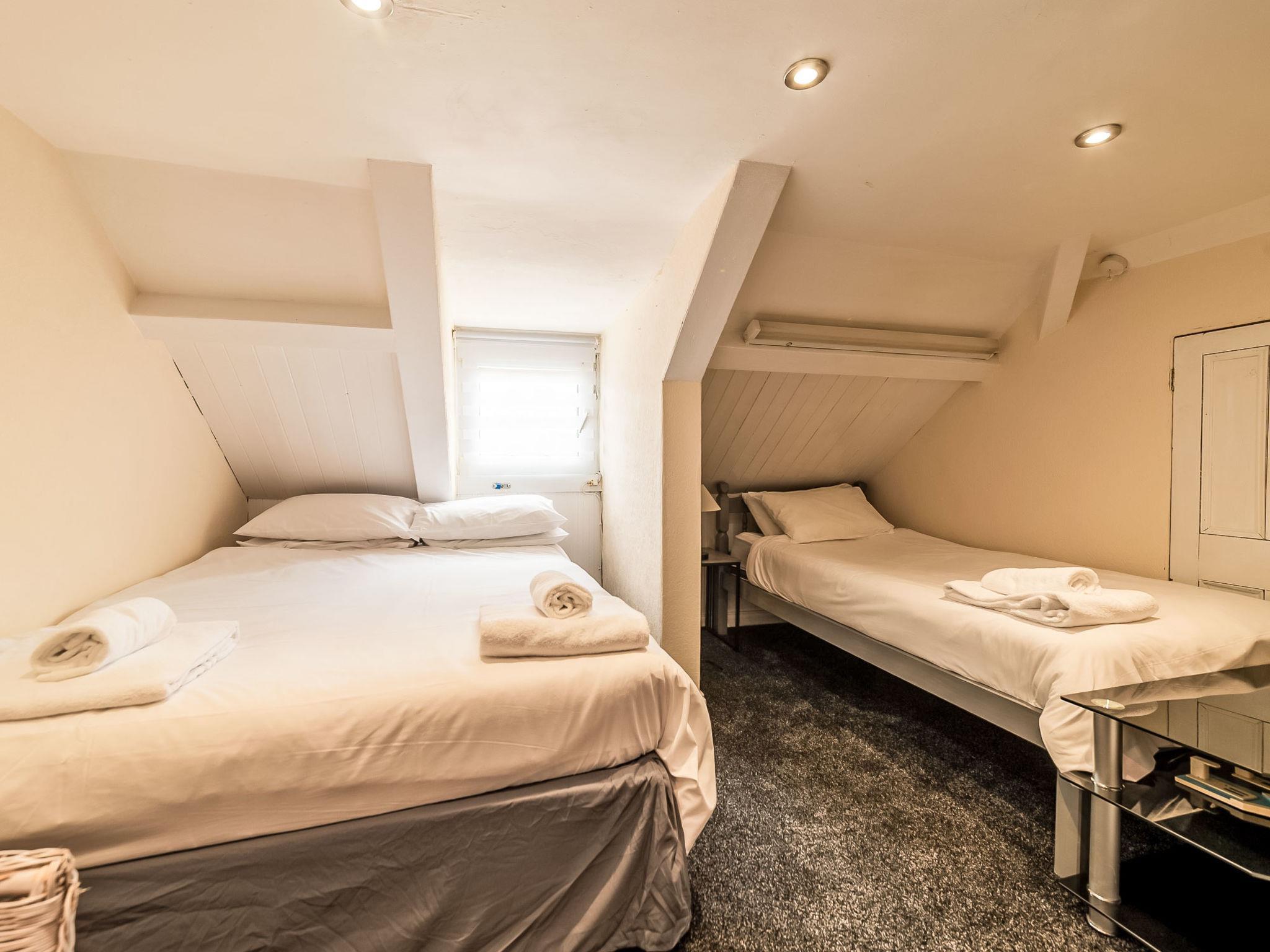 "Tregony House", 5-room house on 4 levels. Spacious and bright, practical furnishings: large entrance hall with separate WC. Large living/dining room with digital TV and electric heating. Kitchen (oven, 4 ceramic glass hob hotplates, microwave, freezer, grill, electric coffee machine) with dining table. Upper floor: with 1 double bed, shower/WC, digital TV and electric heating. 2nd upper floor: 1 double bedroom with 2 beds, shower/WC, digital TV and electric heating. 1 double bedroom with 1 double bed, shower/WC and electric heating. 3nd upper floor: 1 double bedroom with 1 bed, 1 double bed, shower/WC and electric heating. Maximum 3 pets/ dogs allowed.