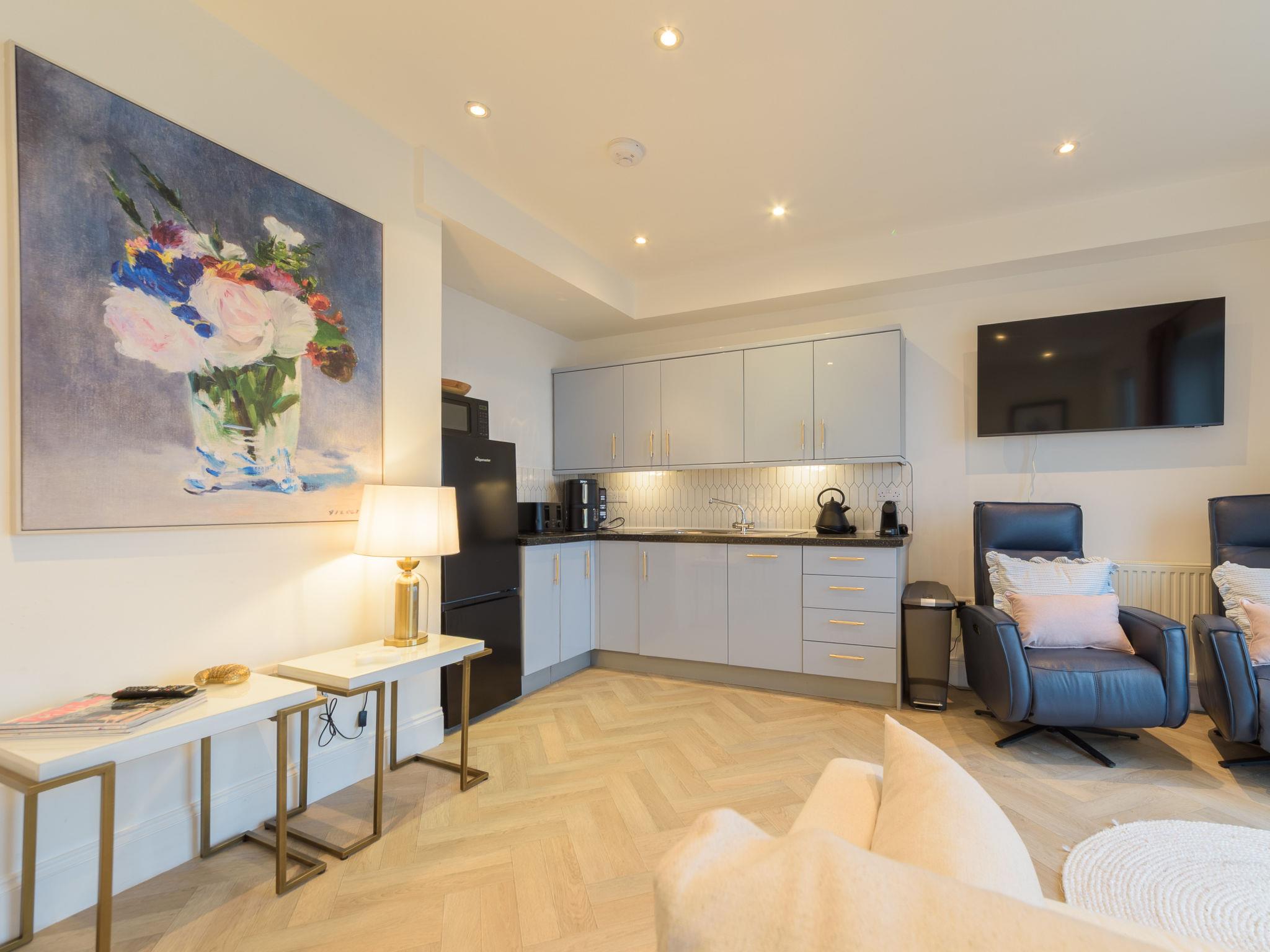 Modern, beautiful apartment house "4 Ocean Heights", renovated in 2025. In the district of Mevagissey, in an elevated position, 140 m from the sea, 140 m from the beach. For shared use: garden with lawn for sunbathing. In the house: washing machine. Parking space n 4. Shop 290 m, grocery 300 m, supermarket 10 km, restaurant, bar 180 m, bakery 290 m, café 240 m, bicycle rental 2 km, pub garden 300 m, 6 minute walk to the centre, bus stop "Trevarth" 550 m, railway station "St austell" 10 km, sandy beach "West wharf beach" 140 m (small). Golf course (18 hole) 7 km, tennis, sports centre 950 m, walking paths from the house 20 m, children's playground 940 m, fishing possibilities 500 m. Nearby attractions: The Lost Gardens of Heligan 4 km, Eden Project 16 km, Tregargus Waterfall 17 km, Fowey Harbour 22 km, Knightor Winery 15 km, St Mawes 27 km. Hiking paths: South West Coast Path 20 m. Please note: no lift.