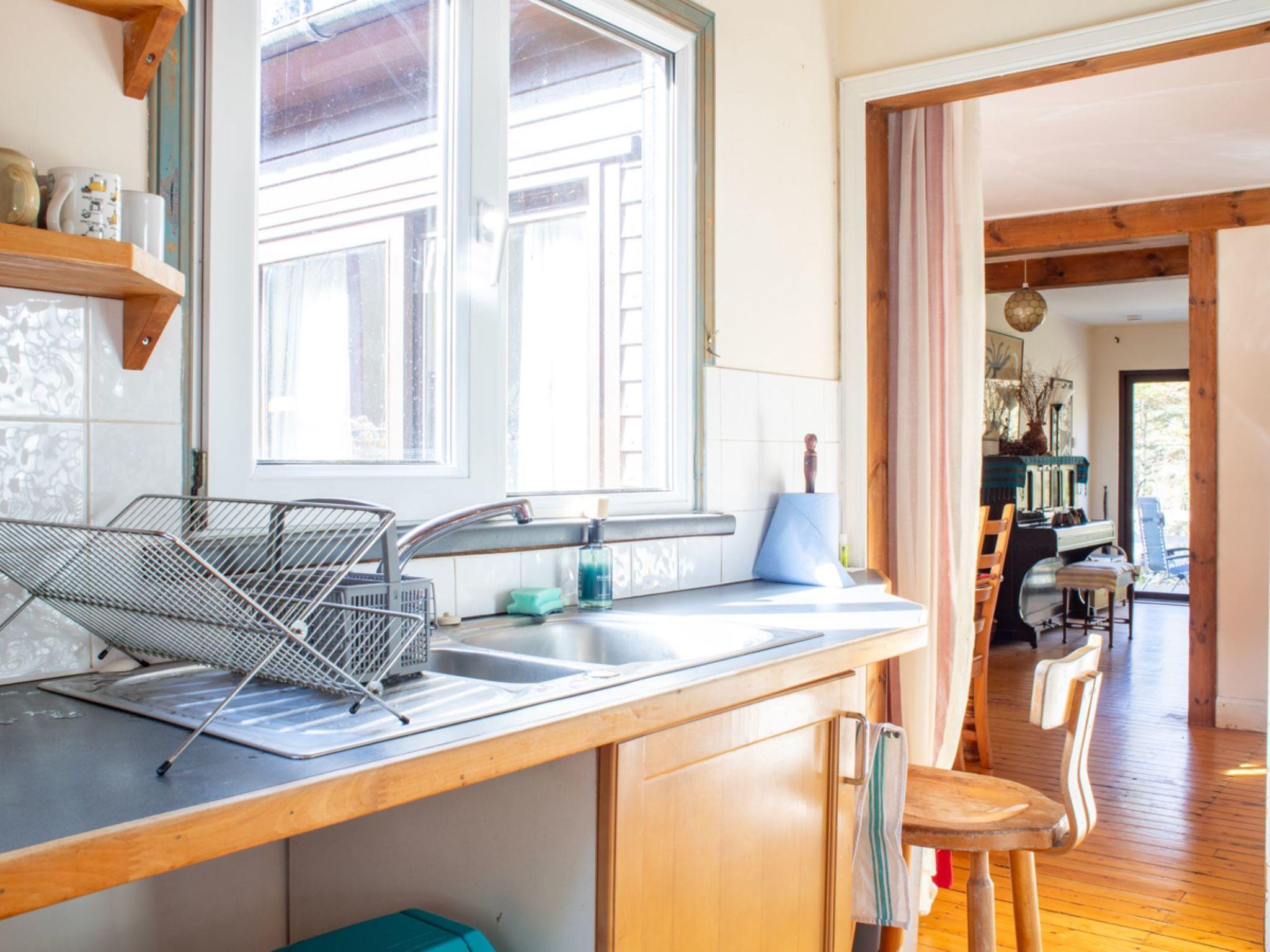 4-room cottage. Very simple and cosy furnishings: dining room with dining table and wood-burning stove. Living room with open-hearth fireplace and TV. Exit to the patio. 1 room with 2 beds and hand-basin. 1 room with 2 beds. 1 double bedroom with 1 double bed and hand-basin. Kitchen (oven, 4 gas rings, toaster, kettle, microwave, freezer, electric coffee machine). Sep. WC, bath/shower/WC. Large. Terrace furniture. Very beautiful view of the forest. Facilities: washing machine. Internet (WiFi). Parking (2 cars). Please note: suitable for families. Non-smoking house. Maximum 1 pet/ dog allowed. TV only EN. Smoke alarm. Please note – access to the property is via forestry track, it is not suitable for cars with low suspension. HI-31620-F