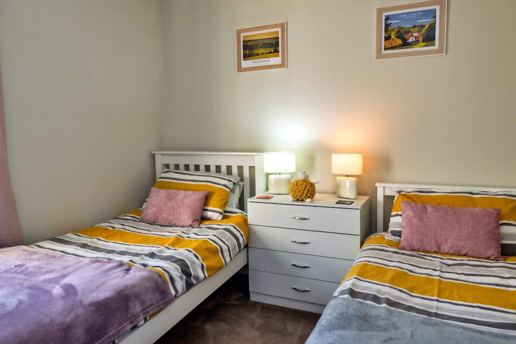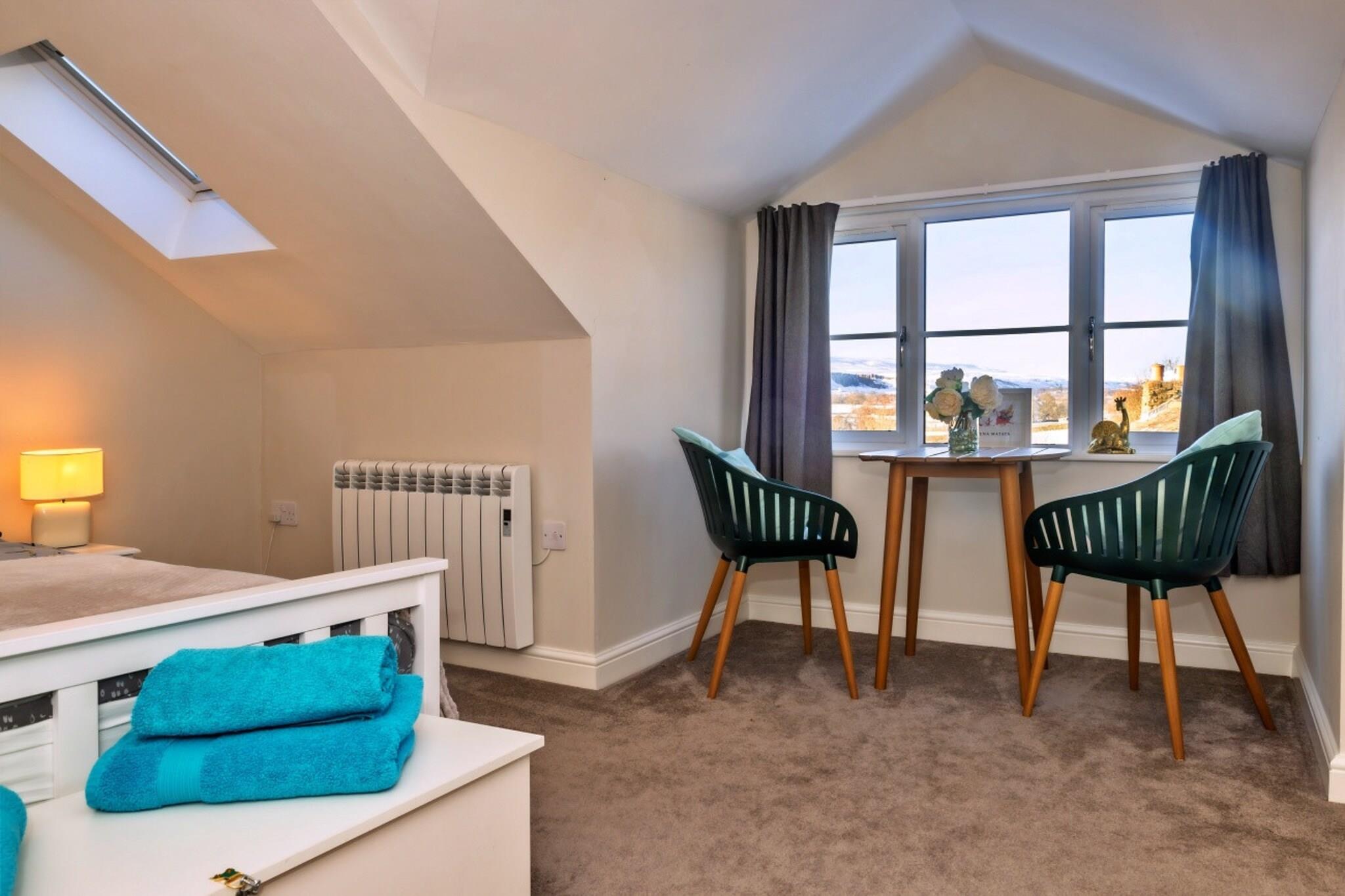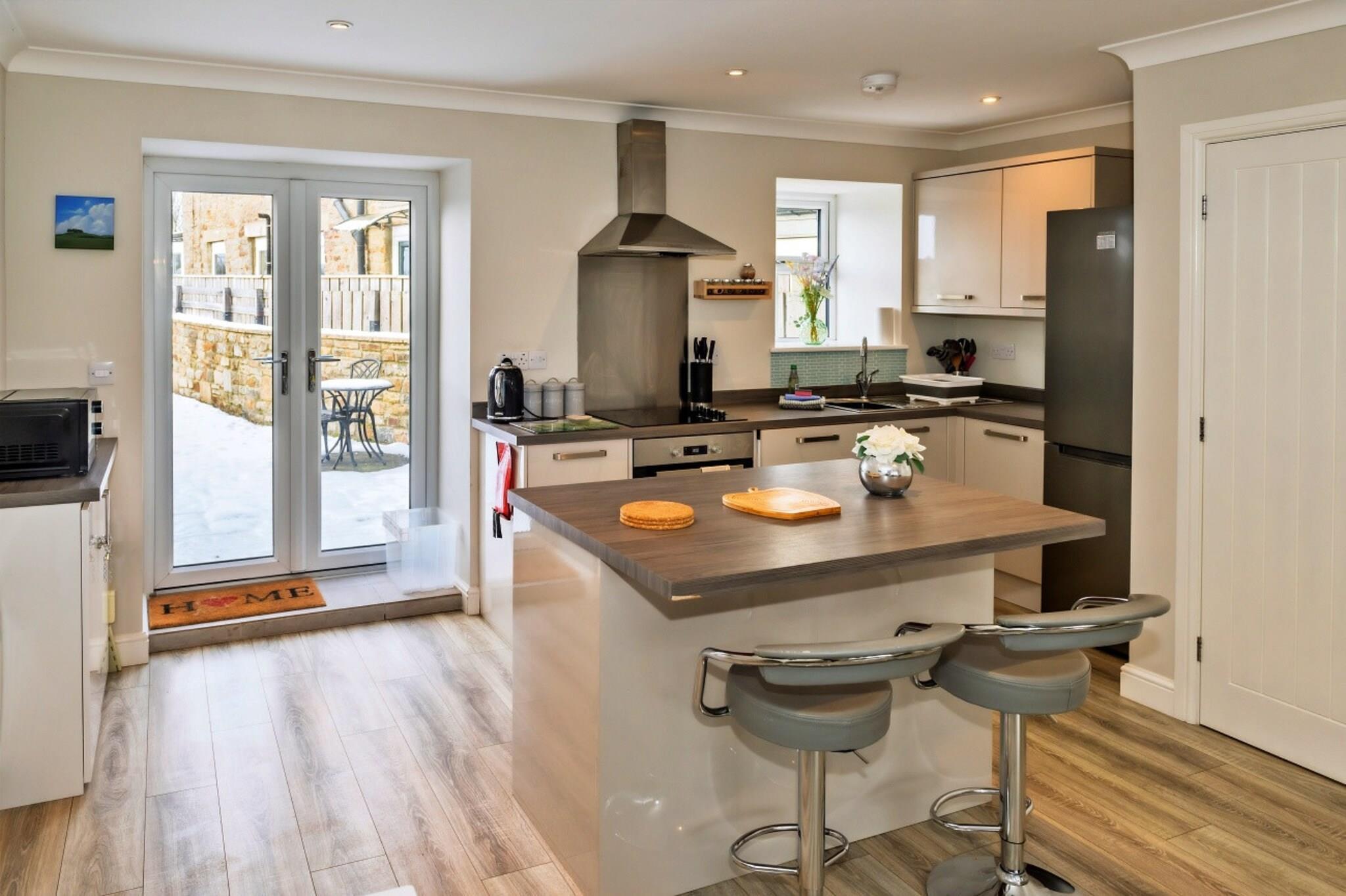 Escape to Bleabeck View, et charmerende 3-værelses rækkehus, der tilbyder den perfekte kombination af hyggeligt ophold og en fantastisk udsigt over det uspolerede naturlandskab. Beliggende i Middleton-in-Teesdale er dette fredelige oase ideelt for familier, små grupper eller dem, der søger en rolig ferie. Med plads til op til 2 velopdragne hunde er den også kæledyrsvenlig for dine lodne ledsagere. Indvendigt har ejendommen tre komfortable soveværelser, herunder to rummelige dobbeltværelser og et soveværelse med 2 enkeltsenge, hvilket gør den ideel til familier eller små grupper. Det åbne køkken og opholdsstue skaber et indbydende rum til både madlavning og afslapning, mens køkkenet er fuldt udstyret med alle de nødvendige hårde hvidevarer. Opholdsområdet giver rigelig siddepladser, perfekt til at slappe af efter en dag med udforskning af landskabet. Ejendommen inkluderer også et hovedbadeværelse samt et ensuite brusebadeværelse for ekstra privatliv og komfort. Træd udenfor i det store haveområde, hvor du kan slappe af ved picnicbænken, mens du nyder den betagende panoramaudsigt over Harter Fell og det omkringliggende landskab. Det er det perfekte sted at nyde et måltid al fresco eller slappe af med en drink. Bleabeck View er ideelt placeret for at udforske områdets naturlige skønhed, med spektakulære vandfald såsom High and Low Force og Bleabeck Falls i nærheden, særligt imponerende efter nedbør. Du kan også besøge lokale vartegn som Barnard Castle og Raby Castle, samt yderligere attraktioner, herunder Richmond Castle og Bamburgh Castle langs Northumberlands kyst. Uanset om du søger at udforske naturen eller slappe af i rolige omgivelser, er Bleabeck View den perfekte base for et uforglemmeligt ophold.