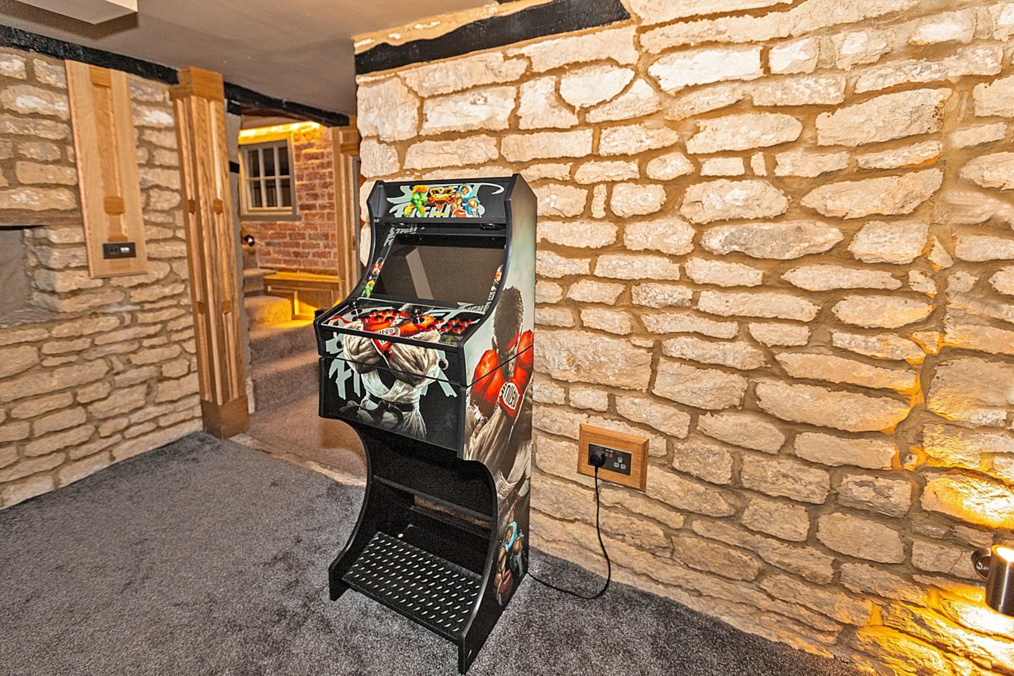 Denne smukt renoverede Grade II fredede herregård tilbyder et unikt og luksuriøst tilflugtssted for familier og grupper med kapacitet til at rumme op til 17 gæster. Ejendommen er fordelt på fire etager og har syv rummelige soveværelser, herunder en-suite faciliteter i nogle. Det omfatter også et spillelokale med en spillehal, en privat sauna og et udendørs spabad, perfekt til afslapning. Huset er kæledyrsvenligt og tillader én hund mod et ekstra gebyr og inkluderer moderne bekvemmeligheder såsom Wi-Fi, smart-tv og et musiksystem. Ejendommen byder på rigelig parkeringsplads og er udstyret med et EV-ladepunkt. Ttich Manor Retreat er beliggende i et roligt område med en fantastisk udsigt og en stor hektar have. Gæsterne kan nyde naturskønne vandreture langs de nærliggende floder og søer, hvilket gør det til en ideel destination for naturelskere. Ejendommen ligger kun en kort afstand fra Milton Keynes, hvilket giver nem adgang til lokale faciliteter, samtidig med at den tilbyder roen i et landligt tilflugtssted. Historiske attraktioner og lokale vartegn forstærker ejendommens tiltrækningskraft, mens de omkringliggende fredelige omgivelser sikrer en afslappende oplevelse. Indenfor kombinerer ejendommen traditionelle funktioner med moderne bekvemmeligheder. Det rummelige køkken er fuldt udstyret med tre ovne, en pod-kaffemaskine og et stort køleskab/fryser, hvilket gør det perfekt til gruppeforplejning. Det ekspansive loungeområde med U-formede sofaer og et smart-tv byder på masser af plads til afslapning, mens yderligere rum såsom morgenmadslokale og garderobe giver ekstra bekvemmelighed. Den nederste etage kan prale af resterne af et gammelt stenslot og fungerer som et underholdende område med et Sony musikanlæg og en privat sauna.