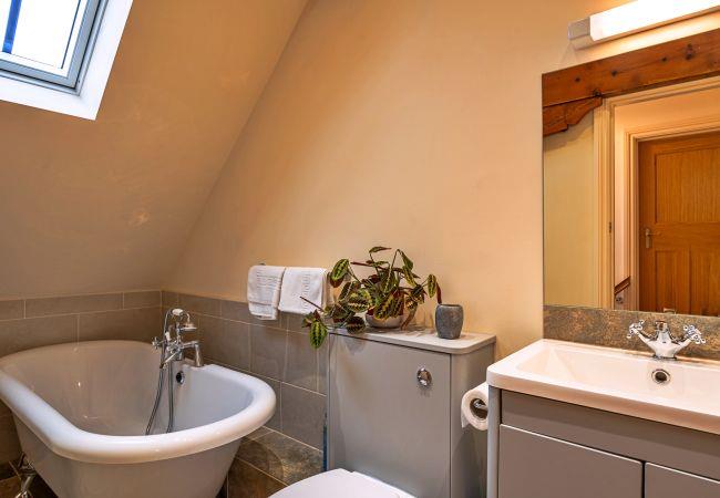 A king-size master en-suite, and a single bedroom together with a separate bathroom with a free-standing bathtub, complete the accommodation.