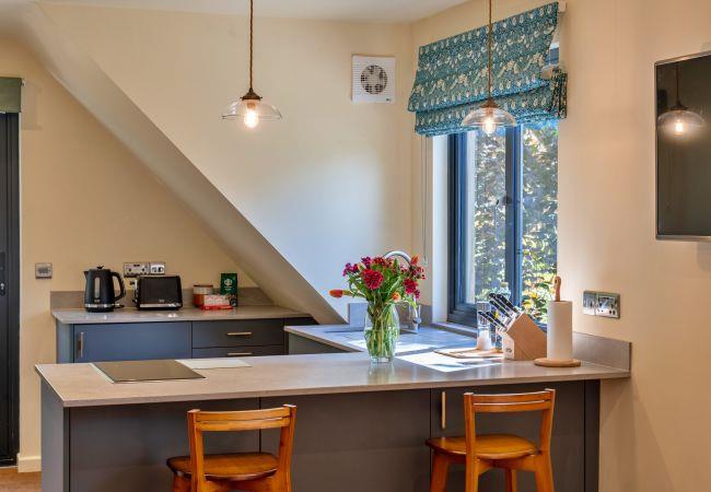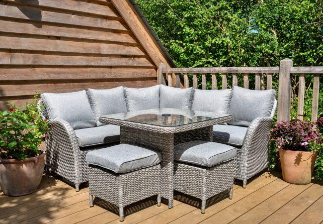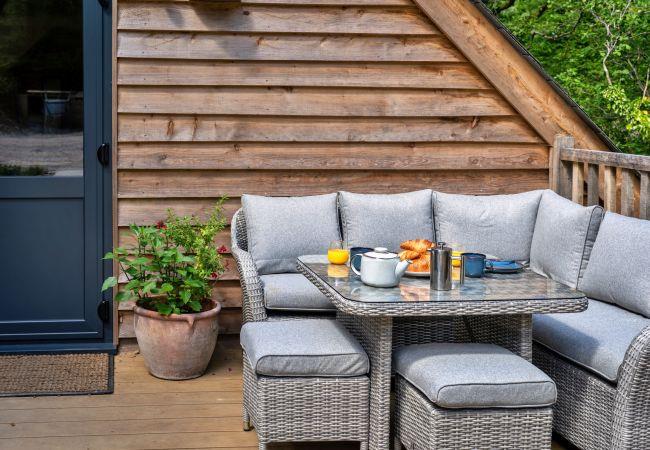 This modern open plan studio boasts amenities including Neff oven, dishwasher, fridge, freezer and en-suite bathroom with walk-in shower, basin and WC. Relax on the comfortable outdoor seating area, taking in the woodland views and wildlife.