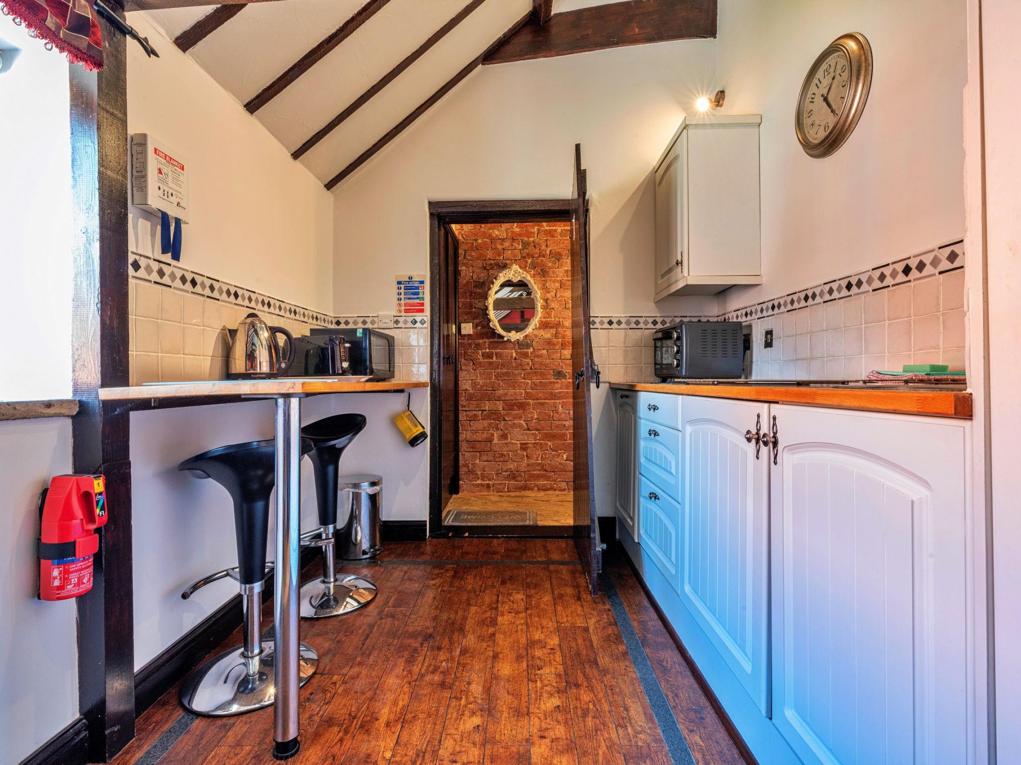 "The Hayloft at Greystones", 2-room apartment 45 m2 on 1st floor. Object suitable for 2 adults. Living room with TV. 1 room with 1 french bed. Kitchen (4 hot plates, oven, dishwasher, toaster, kettle, microwave). Bath/WC. Facilities: Internet (WiFi, free). Parking (roofed, 1 car). Please note: non-smokers only. Smoke alarm.