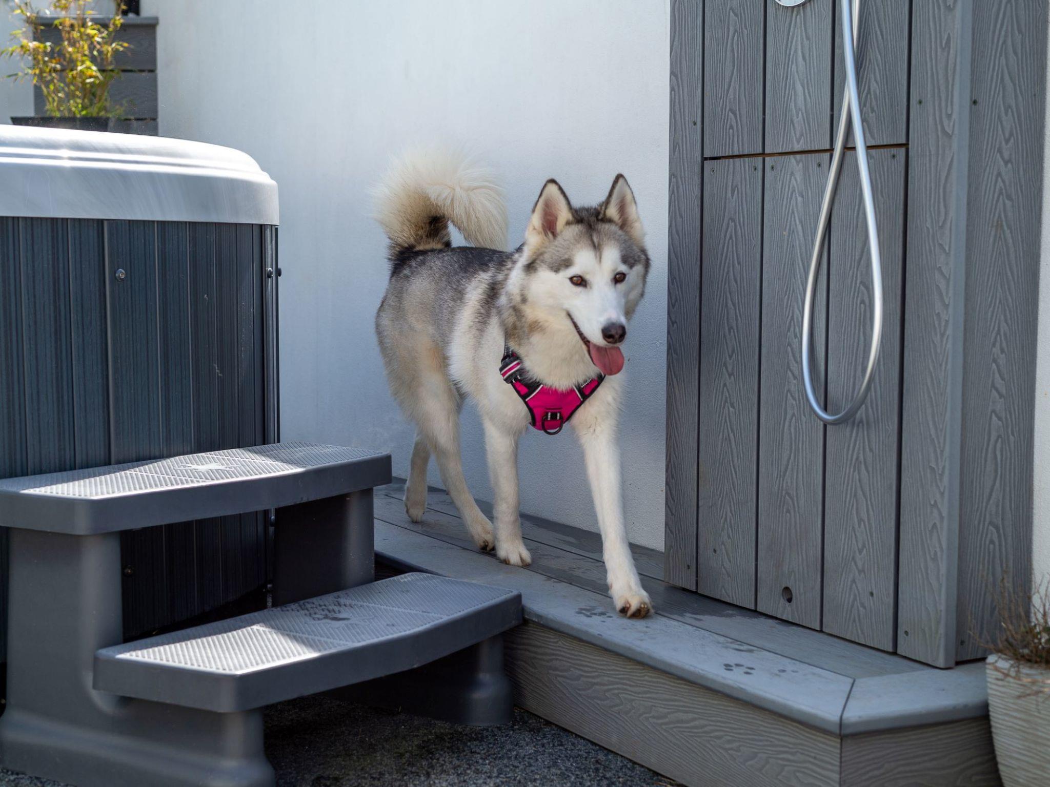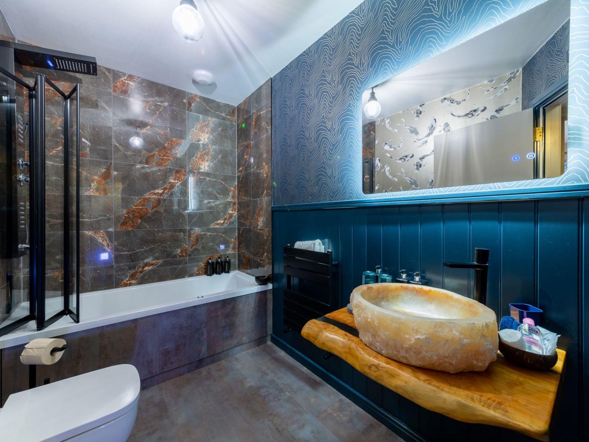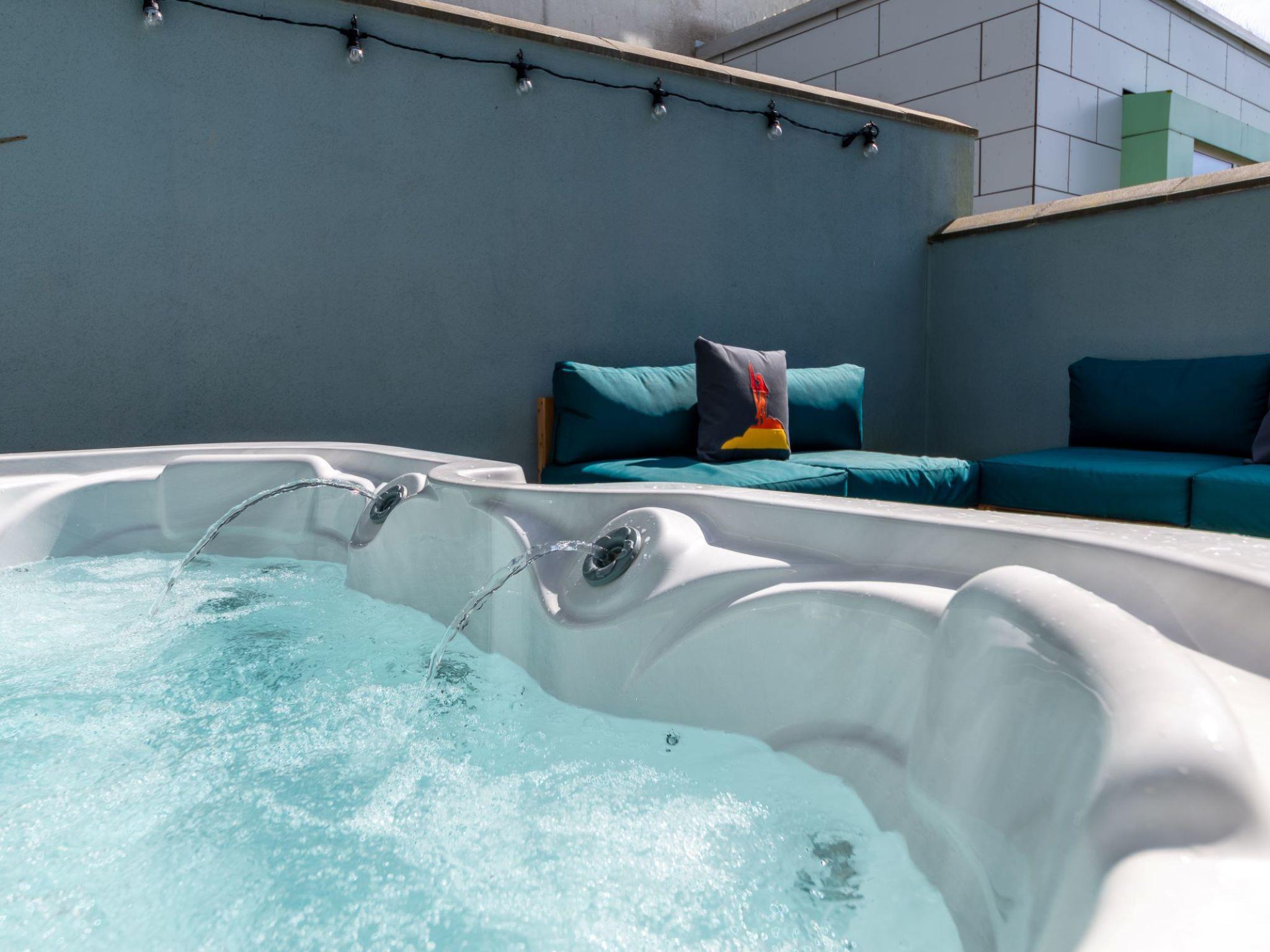 Five star luxury living in the heart of Newquay. If your dates are not available online please get in touch to enquire. Beautiful, luxurious house "Tolcarne", 2 storeys. 3 houses in the residence. In the centre of Newquay, in the heart of the city, from the sea, 200 m from the beach. Private: courtyard. Outdoor shower, hot tub. In the house: washing machine, tumble dryer. Parking. E-charging station. Shop, grocery, supermarket, shopping centre, restaurant, bar 200 m, bakery 200 m, café, pub garden 300 m, 1 minute walk to the centre, bus stop "Manor Road" 220 m, railway station "Newquay" 2 km, sandy beach "Towan Beach", diving center 650 m. Golf course (18 hole) 750 m, surf school 200 m, indoor tennis centre 4 km, minigolf 400 m, riding stable 2 km, sports centre 4 km, children's playground 3 km, fishing possibilities 200 m. Nearby attractions: Blue Reef Aquarium 300 m, Fistral Beach 1 km, Watergate Bay 6 km, Newquay Zoo 3 km, Porth Beach 3 km, Crantock Beach 7 km. Hiking paths: Fistral, Crantock and Newquay Circular 1 km, South West Coast Path 1 km, Bedruthan Steps 6 km. Please note: suitable for families. Additional accommodations can be booked. The complex has another 2 houses for rent.