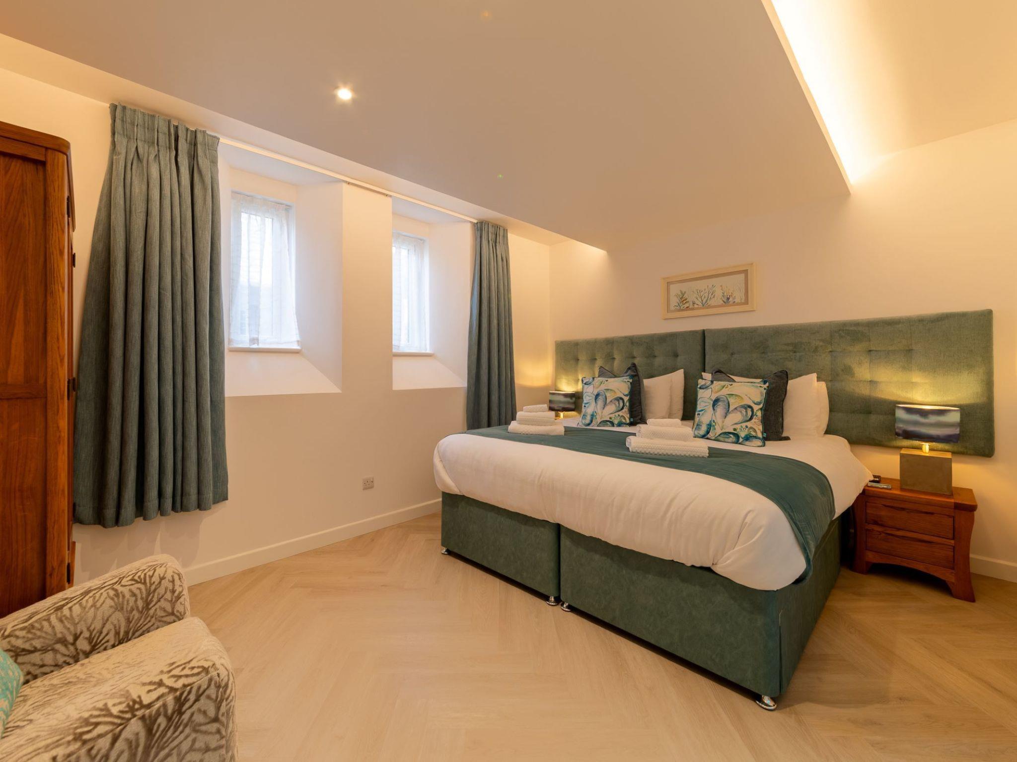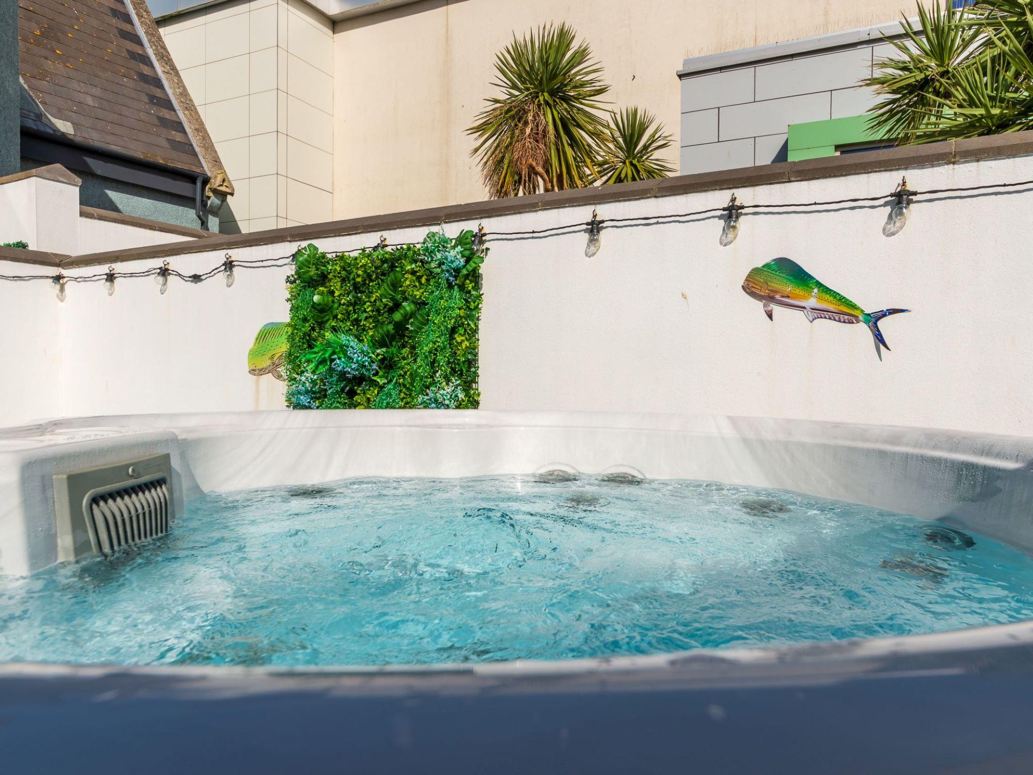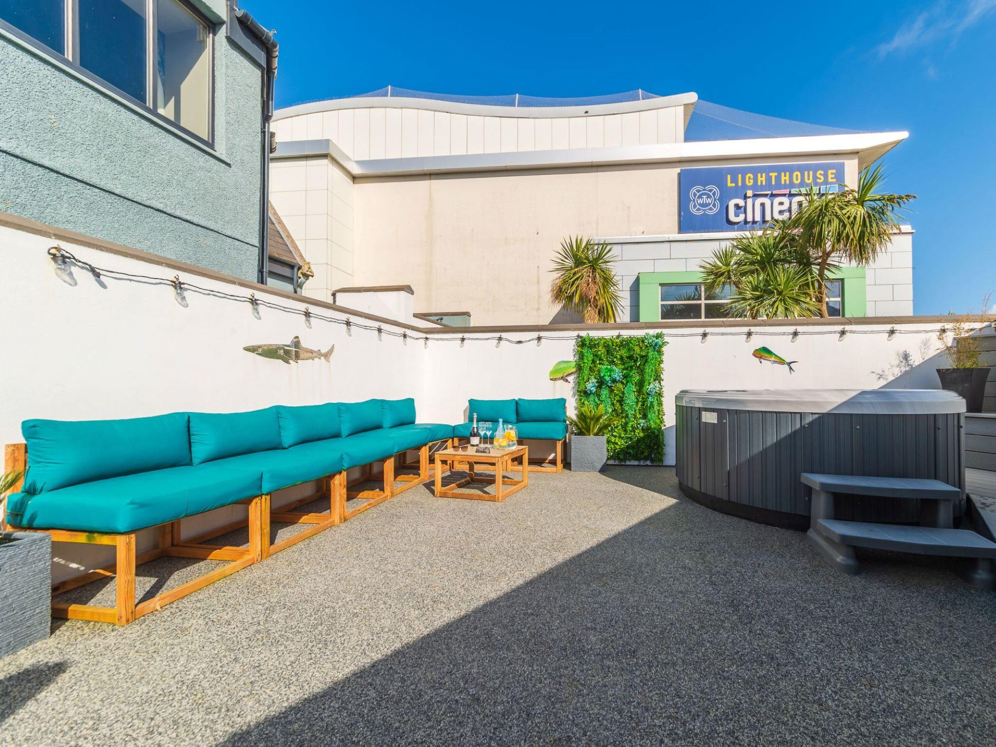 Five star luxury living in the heart of Newquay. If your dates are not available online please get in touch to enquire. Beautiful, luxurious house "Sun Trap", 3 storeys. 3 houses in the residence. In the centre of Newquay, in the heart of the city, from the sea, 200 m from the beach. Private: courtyard. Outdoor shower, hot tub. In the house: washing machine, tumble dryer. Parking. E-charging station. Shop 200 m, grocery, supermarket, shopping centre, restaurant, bar, bakery 200 m, café, pub garden 300 m, 1 minute walk to the centre, bus stop "Manor Road" 220 m, railway station "Newquay" 2 km, sandy beach "Towan Beach", diving center 650 m. Golf course (18 hole) 750 m, surf school 200 m, indoor tennis centre 4 km, minigolf 400 m, riding stable 2 km, sports centre 4 km, children's playground 3 km, fishing possibilities 200 m. Nearby attractions: Blue Reef Aquarium 300 m, Fistral Beach 1 km, Watergate Bay 6 km, Newquay Zoo 3 km, Porth Beach 3 km, Crantock Beach 7 km. Hiking paths: Fistral, Crantock and Newquay Circular 1 km, South West Coast Path 1 km, Bedruthan Steps 6 km. Please note: suitable for families. Additional accommodations can be booked. The complex has another 2 houses for rent.