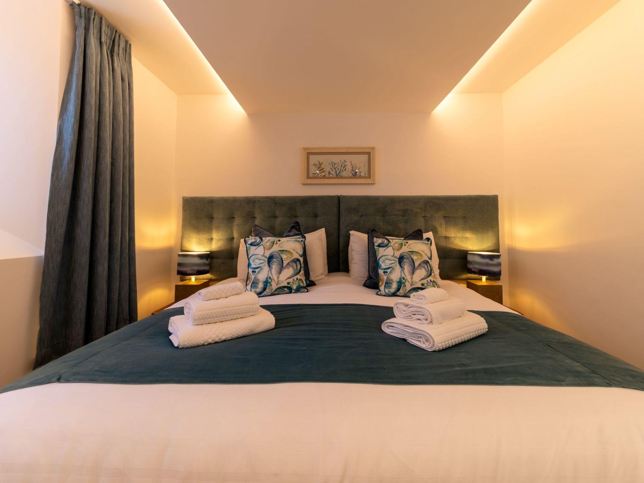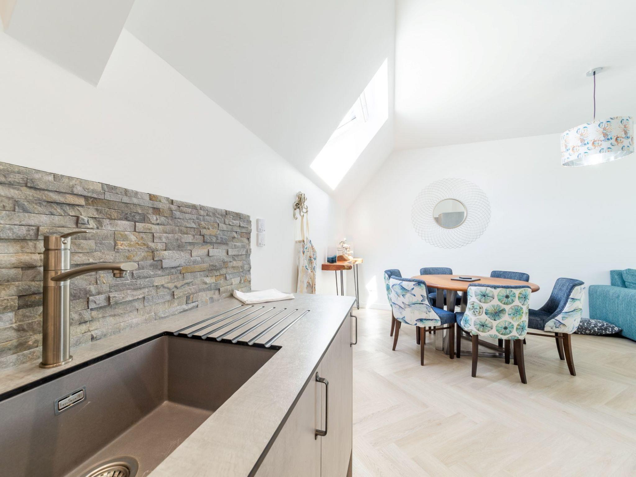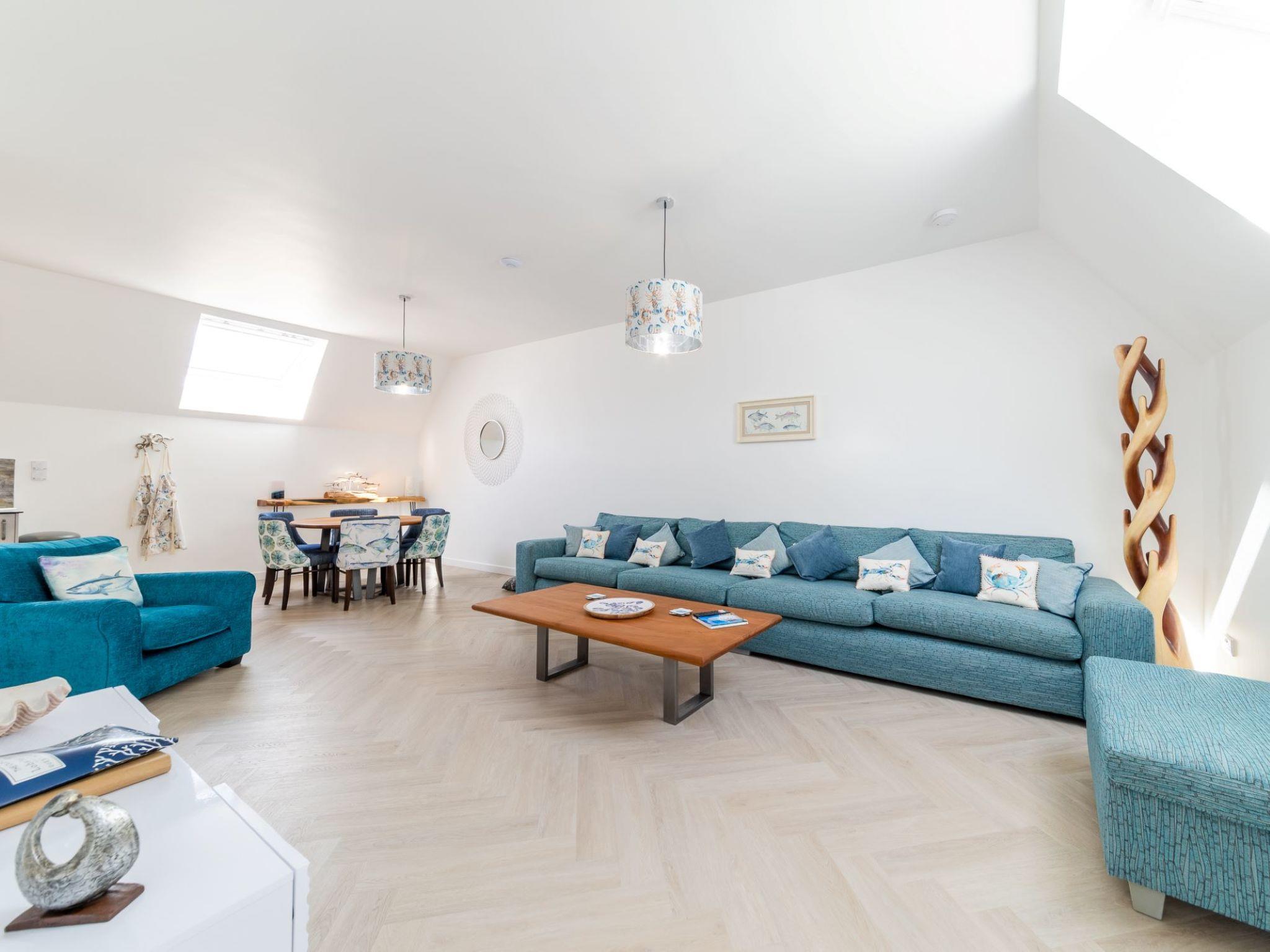 Five star luxury living in the heart of Newquay. If your dates are not available online please get in touch to enquire. Beautiful, luxurious house "Sun Trap", 3 storeys. 3 houses in the residence. In the centre of Newquay, in the heart of the city, from the sea, 200 m from the beach. Private: courtyard. Outdoor shower, hot tub. In the house: washing machine, tumble dryer. Parking. E-charging station. Shop 200 m, grocery, supermarket, shopping centre, restaurant, bar, bakery 200 m, café, pub garden 300 m, 1 minute walk to the centre, bus stop "Manor Road" 220 m, railway station "Newquay" 2 km, sandy beach "Towan Beach", diving center 650 m. Golf course (18 hole) 750 m, surf school 200 m, indoor tennis centre 4 km, minigolf 400 m, riding stable 2 km, sports centre 4 km, children's playground 3 km, fishing possibilities 200 m. Nearby attractions: Blue Reef Aquarium 300 m, Fistral Beach 1 km, Watergate Bay 6 km, Newquay Zoo 3 km, Porth Beach 3 km, Crantock Beach 7 km. Hiking paths: Fistral, Crantock and Newquay Circular 1 km, South West Coast Path 1 km, Bedruthan Steps 6 km. Please note: suitable for families. Additional accommodations can be booked. The complex has another 2 houses for rent.