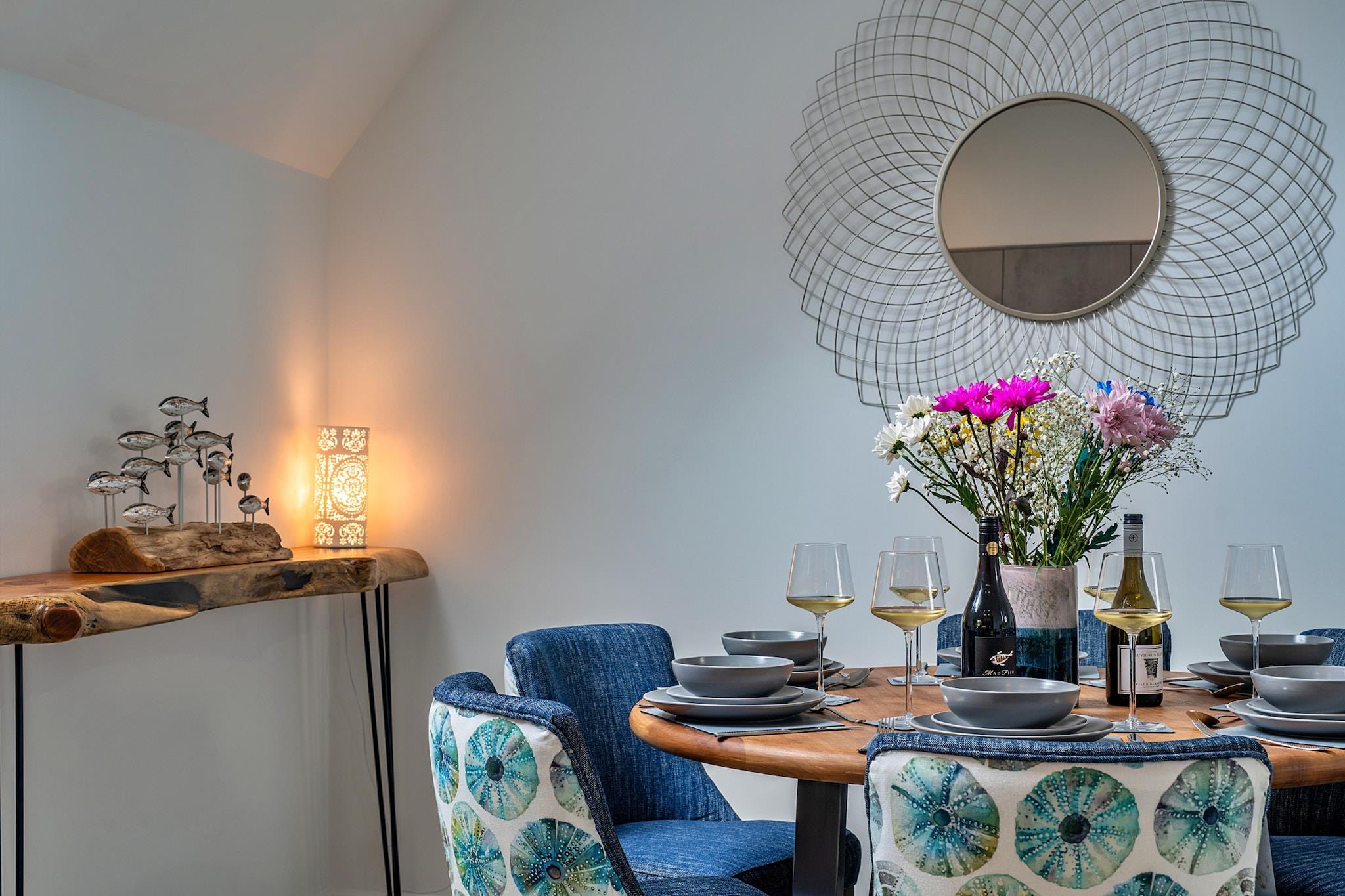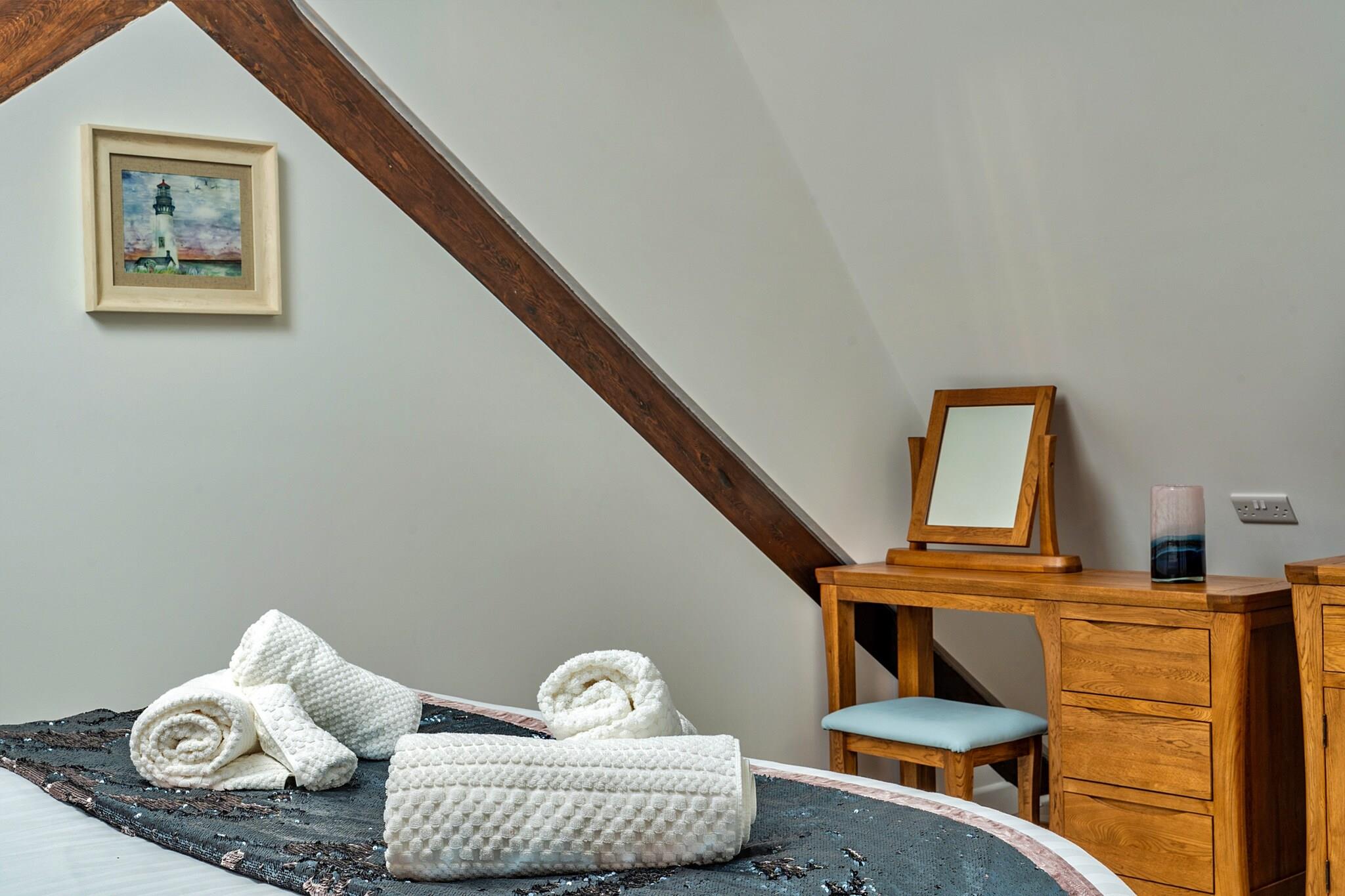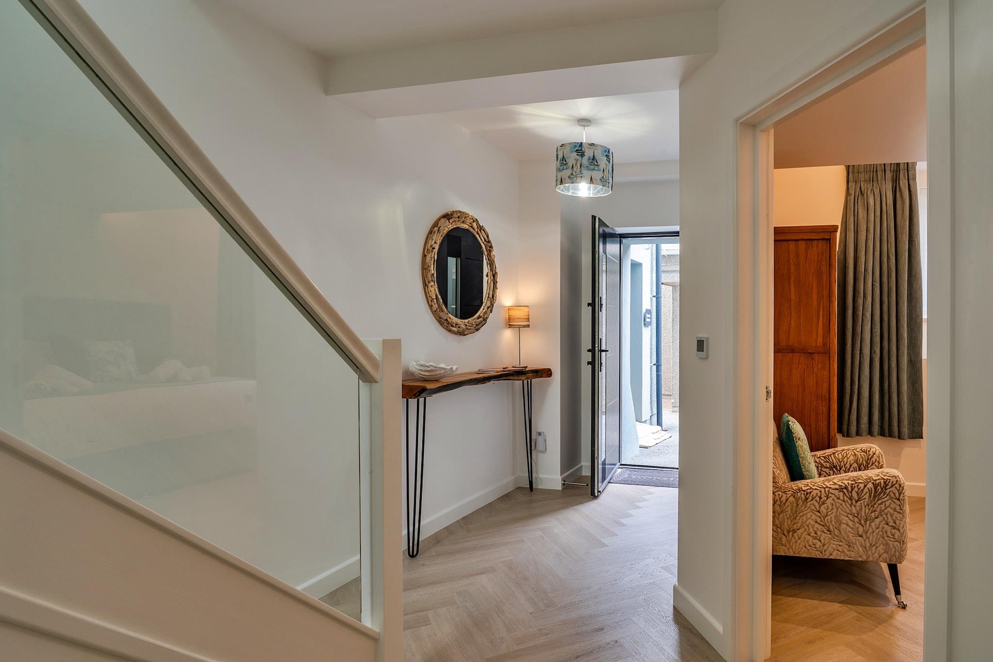 Velkommen til denne fantastiske moderne kapelkonvertering i hjertet af Newquay, hvor moderne luksus møder kystcharme. Kun 200 meter fra Towan Beachs gyldne sand er denne udsøgte oase en af ??tre smukt udformede ferieejendomme, designet til at tilbyde både forkælelse og komfort for familier, par og grupper, der søger en mindeværdig flugt fra Cornwall. Når du træder ind i dette bemærkelsesværdige tilflugtssted, vil du opdage to overdådige super-kingsize zip-and-link soveværelser i stueetagen, som hver er omhyggeligt udstyret med et smart-tv og ensuite badeværelse for at sikre din komfort og privatliv. Gå op ad den markante trappe med glaspaneler for at finde en ekspansiv stue og køkken i åbent plan på første sal. Dette slanke, fuldt udstyrede køkken er en kulinarisk fornøjelse, perfekt til at lave familiemåltider eller snacks til at nyde i den dejlige spiseplads. Et tredje super-kingsize-soveværelse venter på øverste etage med et rummeligt badeværelse, en fortryllende egetræsbjælkevæg, et smart-tv og et stilfuldt toiletbord. For ekstra fleksibilitet kan super-kingsize-sengene arrangeres som singler efter anmodning, der imødekommer din gruppes behov. Træd udenfor til din private lukkede terrasse, hvor du finder komfortable havemøbler og et luksuriøst sekspersoners spabad, perfekt til at slappe af efter en dag med udforskning. Dette lille stykke paradis er kæledyrsvenligt og byder dine lodne ledsagere velkommen til at deltage i det sjove og sikrer, at alle nyder skønheden ved kystlivet. Bekvemmelighed bugner med en EV-oplader på stedet, hvilket gør det nemt for dig at udforske de betagende nærliggende attraktioner. Det pulserende hjerte af Newquay er fyldt med faciliteter, herunder lækre restauranter, livlige barer og en biograf, alt sammen kun en afslappet gåtur væk. Fistral Beach, der er kendt for sin surfkultur, ligger mindre end 1,6 km fra din dør, mens flere maleriske vandreture langs kysten venter i Crantock og videre. Med badehåndklæder og badekåber til rådighed, er du klar til at hengive dig til den kystnære livsstil. Dette moderne tilflugtssted er et fristed af fredfyldt luksus designet til et uforglemmeligt eventyr i Cornwall.