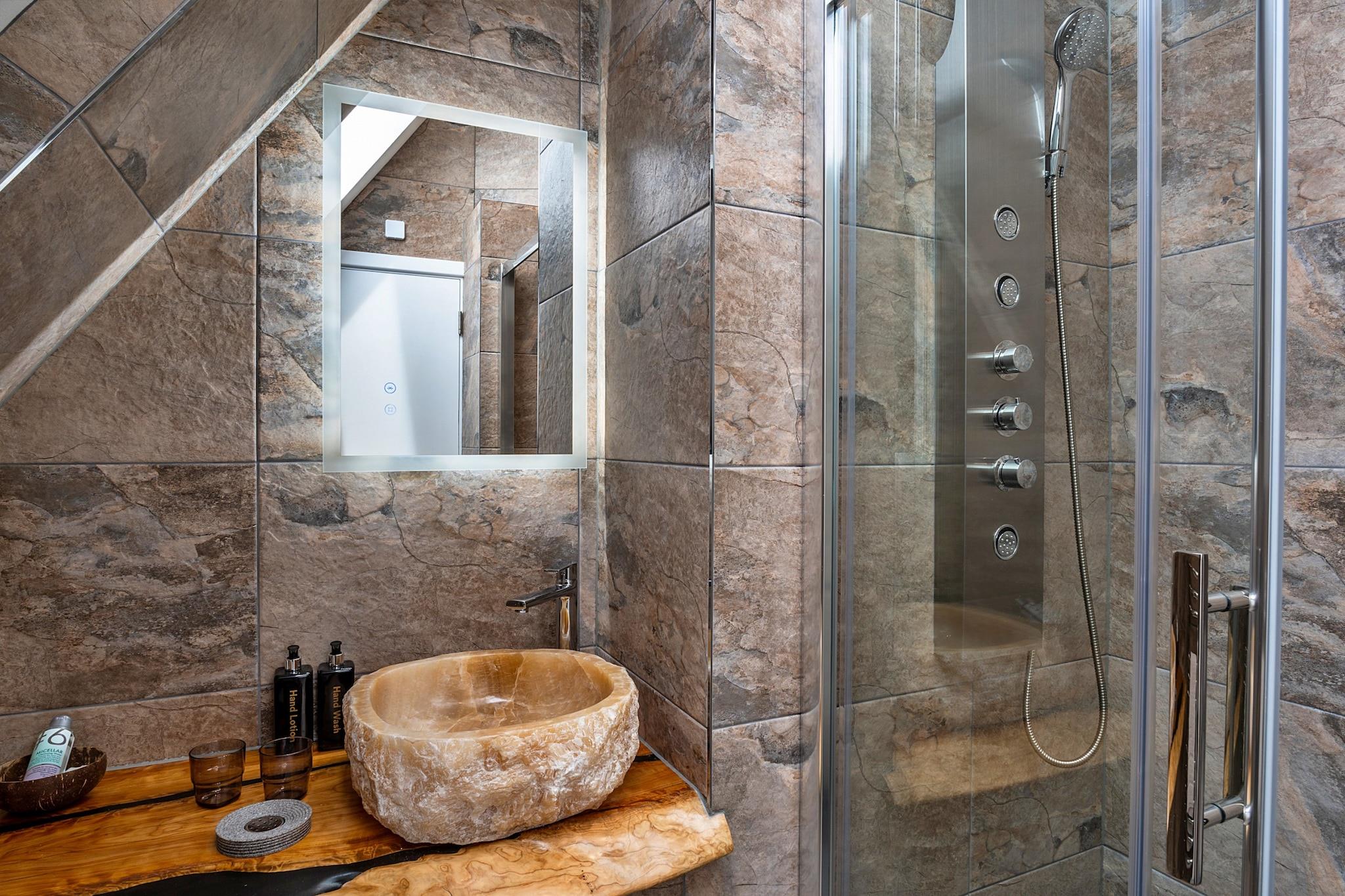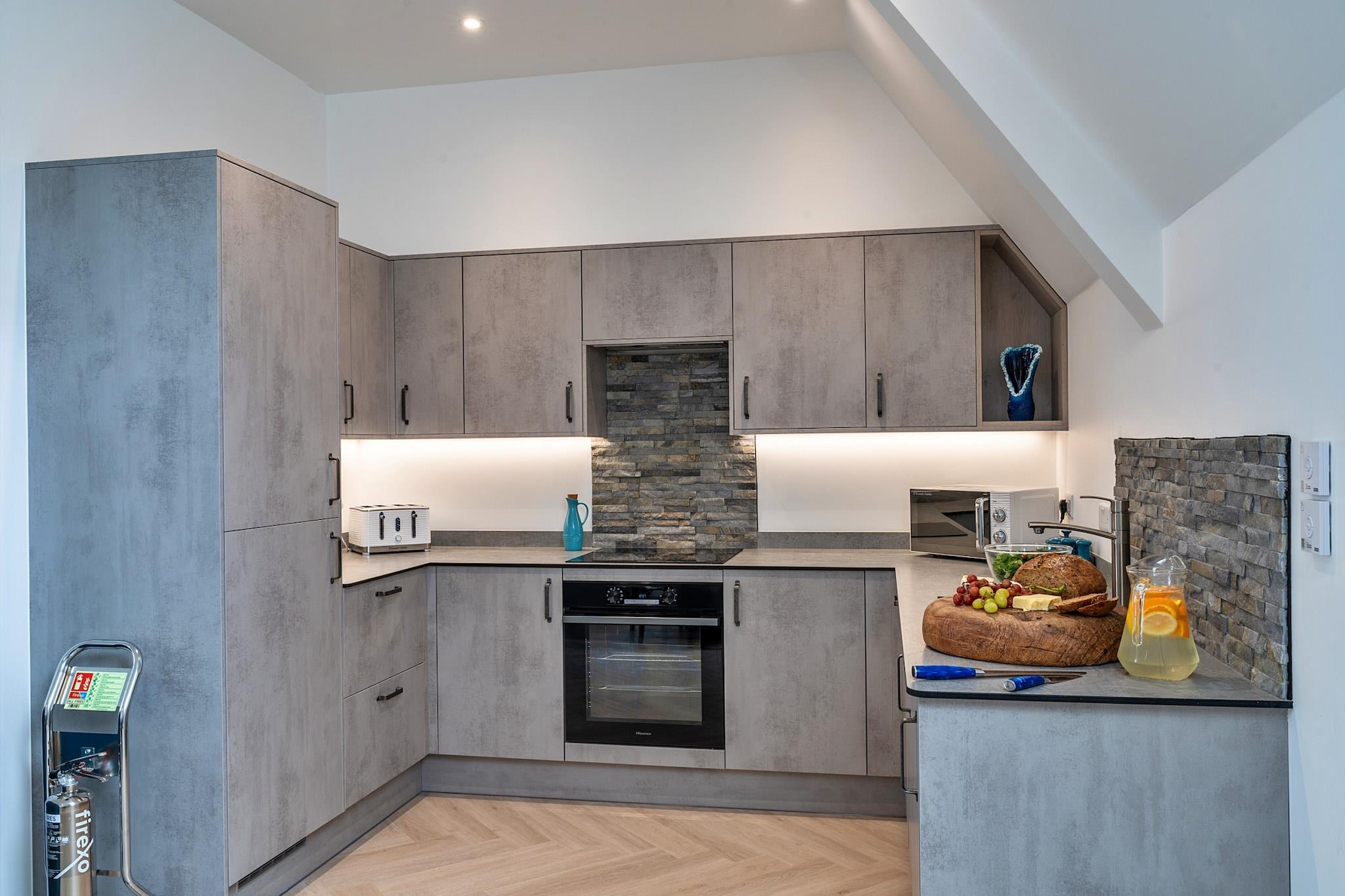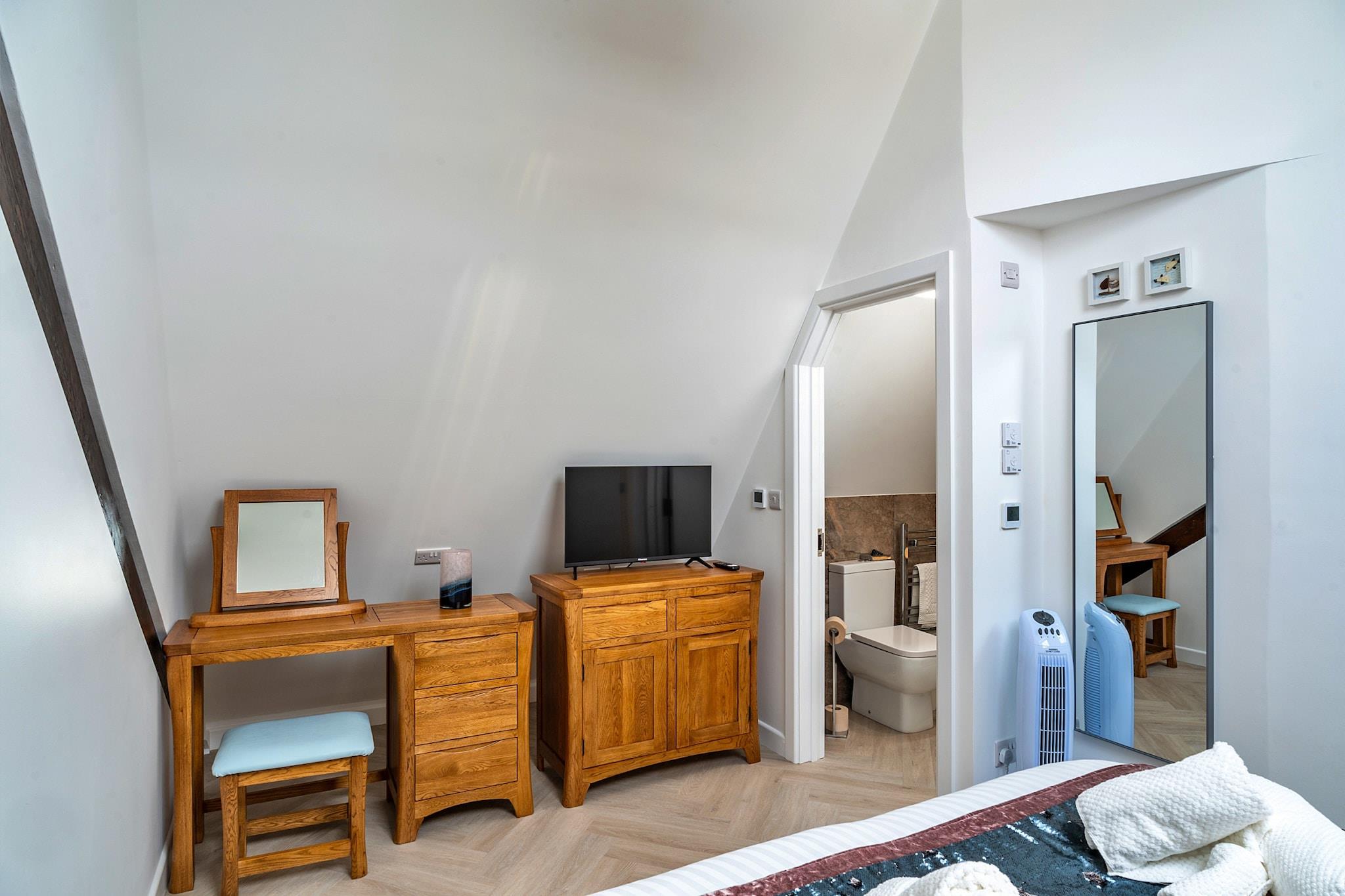 Velkommen til denne fantastiske moderne kapelkonvertering i hjertet af Newquay, hvor moderne luksus møder kystcharme. Kun 200 meter fra Towan Beachs gyldne sand er denne udsøgte oase en af ??tre smukt udformede ferieejendomme, designet til at tilbyde både forkælelse og komfort for familier, par og grupper, der søger en mindeværdig flugt fra Cornwall. Når du træder ind i dette bemærkelsesværdige tilflugtssted, vil du opdage to overdådige super-kingsize zip-and-link soveværelser i stueetagen, som hver er omhyggeligt udstyret med et smart-tv og ensuite badeværelse for at sikre din komfort og privatliv. Gå op ad den markante trappe med glaspaneler for at finde en ekspansiv stue og køkken i åbent plan på første sal. Dette slanke, fuldt udstyrede køkken er en kulinarisk fornøjelse, perfekt til at lave familiemåltider eller snacks til at nyde i den dejlige spiseplads. Et tredje super-kingsize-soveværelse venter på øverste etage med et rummeligt badeværelse, en fortryllende egetræsbjælkevæg, et smart-tv og et stilfuldt toiletbord. For ekstra fleksibilitet kan super-kingsize-sengene arrangeres som singler efter anmodning, der imødekommer din gruppes behov. Træd udenfor til din private lukkede terrasse, hvor du finder komfortable havemøbler og et luksuriøst sekspersoners spabad, perfekt til at slappe af efter en dag med udforskning. Dette lille stykke paradis er kæledyrsvenligt og byder dine lodne ledsagere velkommen til at deltage i det sjove og sikrer, at alle nyder skønheden ved kystlivet. Bekvemmelighed bugner med en EV-oplader på stedet, hvilket gør det nemt for dig at udforske de betagende nærliggende attraktioner. Det pulserende hjerte af Newquay er fyldt med faciliteter, herunder lækre restauranter, livlige barer og en biograf, alt sammen kun en afslappet gåtur væk. Fistral Beach, der er kendt for sin surfkultur, ligger mindre end 1,6 km fra din dør, mens flere maleriske vandreture langs kysten venter i Crantock og videre. Med badehåndklæder og badekåber til rådighed, er du klar til at hengive dig til den kystnære livsstil. Dette moderne tilflugtssted er et fristed af fredfyldt luksus designet til et uforglemmeligt eventyr i Cornwall.