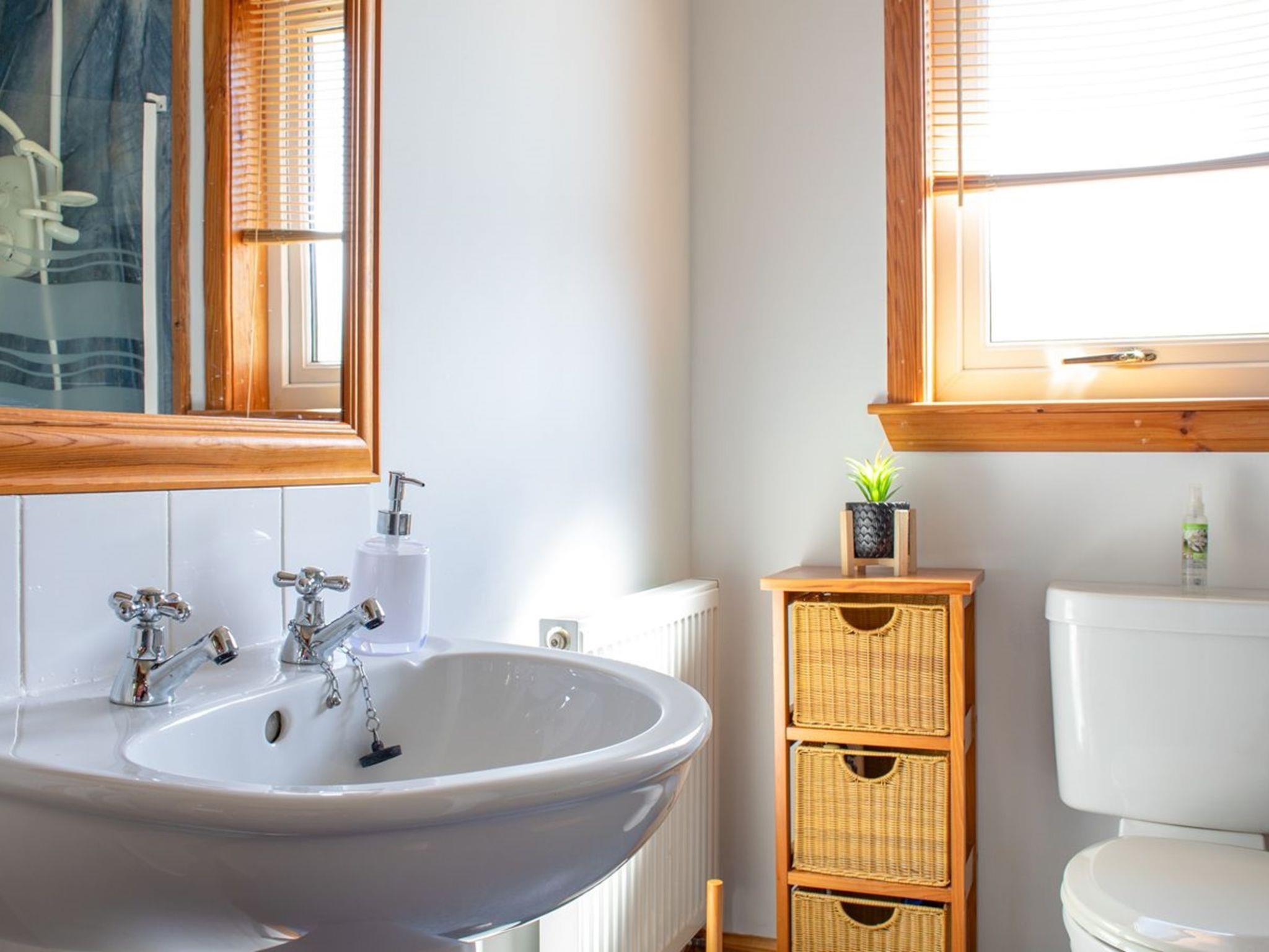 4-room cottage 99 m2. Comfortable and cosy furnishings: lounge with digital TV and DVD. 1 double bedroom with 1 double bed and shower/WC. 1 room with 2 beds. 1 room with 1 bed. Kitchen (oven, 4 ceramic glass hob hotplates, toaster, kettle, microwave, freezer) with dining table. Bath/WC. Oil heating. Terrace furniture. Very beautiful view of the sea. Facilities: washing machine, children's high chair, baby cot for up to 2 year olds. Internet (WiFi). Parking (2 cars) at the house. Please note: non-smoking house. TV only EN. Smoke alarm, fire extinguisher. Strictly No pets as it's a working croft, owner has sheep in the fields surrounding the cottage. HI-30250-F