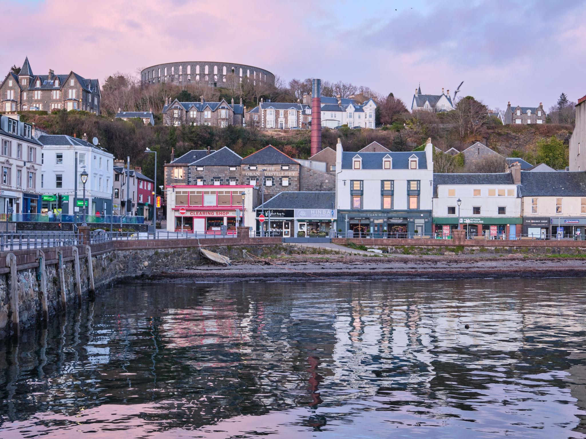 Apartment house. In the centre of Oban, 10 m from the sea. Public parking on the road. Shop, grocery 20 m, restaurant, bar, café 10 m, bus stop 200 m, railway station "Oban" 250 m, ferry "Oban North Pier Ferry" 250 m, sandy beach "Ganavan Sands" 4 km. Golf course (9 hole) 3 km, riding stable 3 km. Nearby attractions: Oban Distillery 25 m, Dunollie Castle 3 km, Arduaine Gardens 30 km. Please note: no lift. Enjoy taking a walk down to the beaches at Ganavan, or a short ferry trip to the Island of Kerrera with its very own castle and in summer a Tearoom.