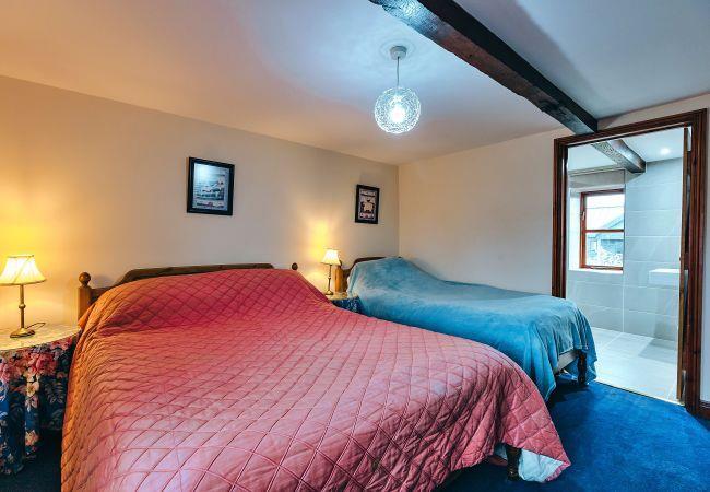 The family room boasts a king-size bed and an additional single bed, making it the perfect cosy retreat. The en-suite bathroom is beautifully decorated and features a walk-in shower, basin, and WC. The other two bedrooms consist of a double and single bedroom and a twin room, each having its en-suite bathroom with a walk-in shower, basin, and WC.