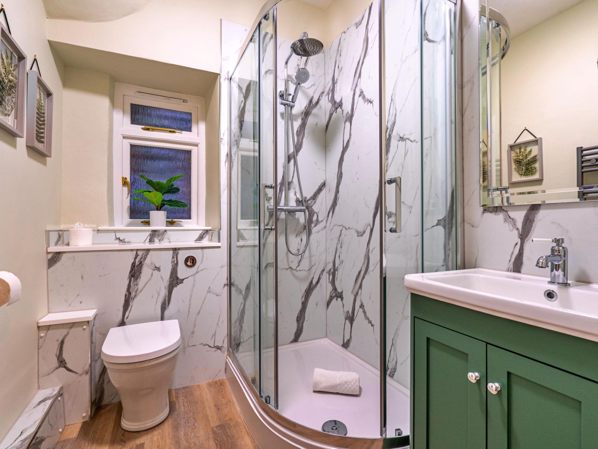"The Cottage at Tideswell", 5-room house 89 m2. Object suitable for 8 adults. Living room with open-hearth fireplace and TV. 1 room with 1 french bed and TV. 1 room with 1 french bed. 1 room with 2 beds. 1 room with 1 french bed. Kitchen (oven, dishwasher, 4 induction hot plates, toaster, kettle, microwave, freezer). 2 showers/WC. Facilities: washing machine, iron. Internet (WiFi, free). Please note: non-smokers only. 2 pets/ dogs allowed. Smoke alarm.