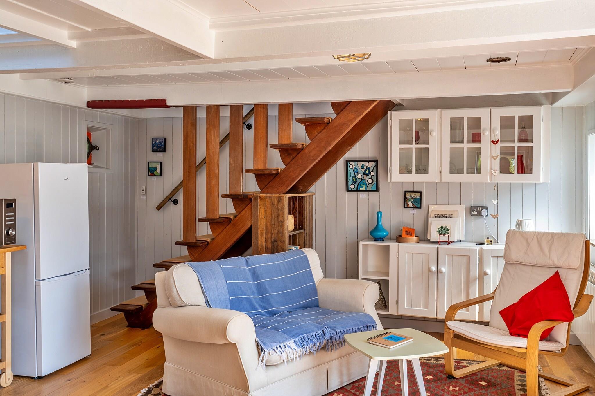 Oplev charmen ved The Watchtower på Western Watch, et unikt kæledyrsvenligt tilflugtssted beliggende i den barske skønhed i Pendeen, Cornwall. Dette historiske, ombyggede vagttårn tilbyder en betagende panoramaudsigt over bølgende marker, ud til havet og det ikoniske Pendeen Fyrtårn. Oprindeligt en maritim granitlade, blev den forvandlet af den lokale skibsradiooperatør William Waters, som tilførte rummet autentiske maritime detaljer som koøjer, skibsdele og vintage radioer, hvilket skabte en fængslende søfartsatmosfære. Indenfor finder du et hyggeligt opholdsområde i åbent plan med et tekøkken, perfekt til at slappe af efter dage med at udforske Cornwalls dramatiske kystlinje, med din lodne ledsager ved din side. Ovenpå fører et charmerende soveværelse med dobbeltseng med nedre bjælker til 'Lookout', hvor du kan træde ud på den omsluttende balkon. Nyd din morgenkaffe eller aftenvin, mens du nyder den spektakulære havudsigt. Haven, selvom den er lukket, kræver opsyn af hunde og tilbyder udendørs siddepladser og vidtstrakte græsplæner for at nyde den friske kystluft. Blot en kilometer ned ad bakke lokker det hvide fyrtårn i Pendeen Watch til naturskønne gåture, og nærliggende strande som Beach Cove og Portheras Cove er perfekte til svømning, solbadning og opdagelse af Cornwalls skjulte kystperler. Gennem hele tårnet pryder kunstelskeren og trykkeriet Angela Annesleys samling væggene og giver et unikt indblik i hendes kreative verden. Gæster har eksklusiv adgang til hendes kunstværker med mulighed for at købe til nedsatte priser. Bemærk venligst, at de traditionelle åbne trintrapper og skrålofter muligvis ikke passer til alle, og børn er ikke tilladt. Én velopdragen hund er velkommen, hvilket giver den perfekte flugt for naturelskende kæledyrsejere. For større grupper kan en ekstra ejendom på stedet rumme op til seks gæster. Uanset om du søger ro eller kunstnerisk inspiration, lover Vagttårnet et uforglemmeligt Cornish-eventyr.