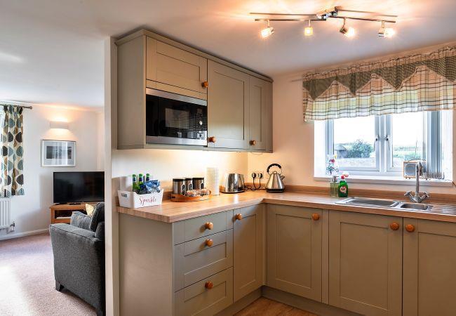 Set within the picturesque grounds of the owners' home, you can enjoy peaceful walks and explore the unspoiled landscapes. Ideal for families, this cottage boasts a spacious and welcoming interior. The open-plan living area on the first floor features a well-equipped kitchen with an electric oven and hob, microwave, fridge, and freezer, making it easy to whip up delicious meals after a day of adventure. Gather around the dining table to share an evening meal or unwind on the sofa in front of the TV, while taking in the beautiful countryside views through the large windows.