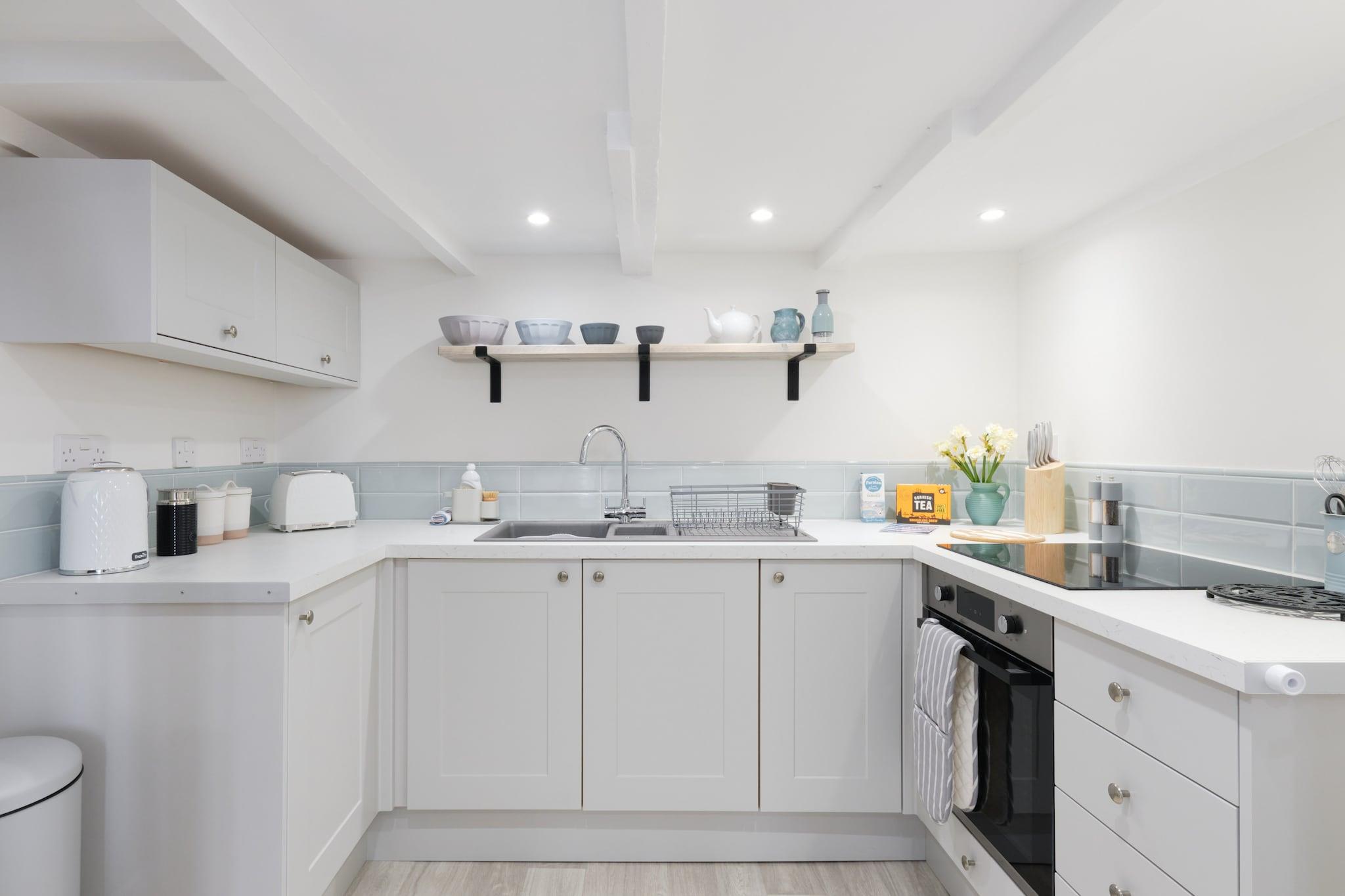 Dette charmerende, traditionelle fiskerhus tilbyder et hyggeligt tilflugtssted i hjertet af Porthleven med plads til op til tre gæster. Ejendommen omfatter to soveværelser: et primært soveværelse med dobbeltseng med indbygget opbevaring og et andet soveværelse med en enkeltseng. Stuen er udstyret med komfortable sofaer, et smart-tv og en brændeovn med flere brændstoffer, perfekt til afslappende aftener. Hytten er kæledyrsvenlig og tillader en lille hund (under 10 kg) mod et tillægsgebyr og inkluderer væsentlige faciliteter såsom varme, sengelinned, håndklæder og internetadgang. Det er også bekvemt placeret kun 0,5 miles fra sandstranden, hvilket gør det til et ideelt sted for en strandferie. Porthleven selv er en uspoleret fiskerby med sin charmerende granithavn, mole og det ikoniske klokketårn. Gæsterne kan nyde at gå til en række uafhængige butikker, prisvindende caféer og restauranter samt lokale pubber. Området byder på en afslappet, men alligevel levende atmosfære, perfekt til en strandferie. Med sin nærhed til kysten og naturskønne vandrestier giver denne beliggenhed en god base for udendørsaktiviteter såsom vandreture og strandudflugter. Hyttens centrale beliggenhed giver gæsterne mulighed for nemt at udforske landsbyens lokale attraktioner, herunder den smukke havn og den omkringliggende kystlinje. Sommerhusets indretning strækker sig over tre etager med køkken, bryggers og brusebad i stueetagen og en stue på første sal. Brugsområdet er en god plads til opbevaring af cykler eller surfbrætter. Udenfor har ejendommen fordel af et fælles gårdhaveområde, hvor gæsterne kan nyde morgensolskin.
