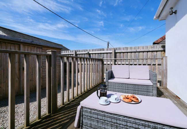 With generously sized rooms and lots of light, there is a bright airy feel inside, and double patio doors from the living room out to a decked sitting area provides the perfect spot to enjoy your morning coffee whilst listening to the seagulls!
