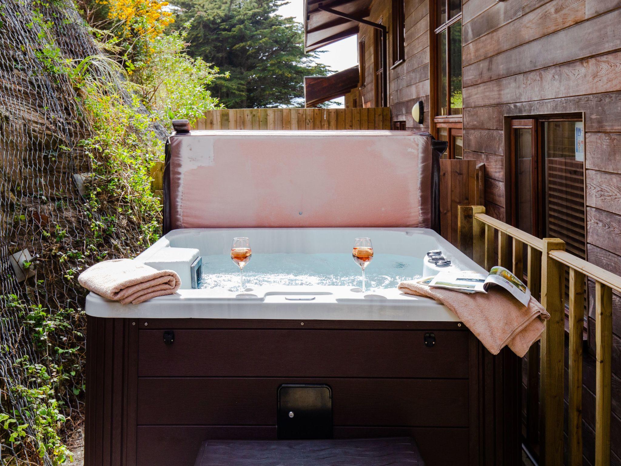 The property's exterior complements its interior with a communal garden that encapsulates the peace and tranquility of the area. For moments of relaxation or social gatherings, there is outside furniture to enhance your experience. The hot tub, positioned in a secluded private area at the back of the property, offers an intimate setting for relaxation, while an enclosed space provides both a hot tub (for your exclusive use) and a drying area. Additionally, an outside seating area at the front welcomes guests to enjoy the serene environment. Dogs are more than welcome, but should be kept on a lead around the site.