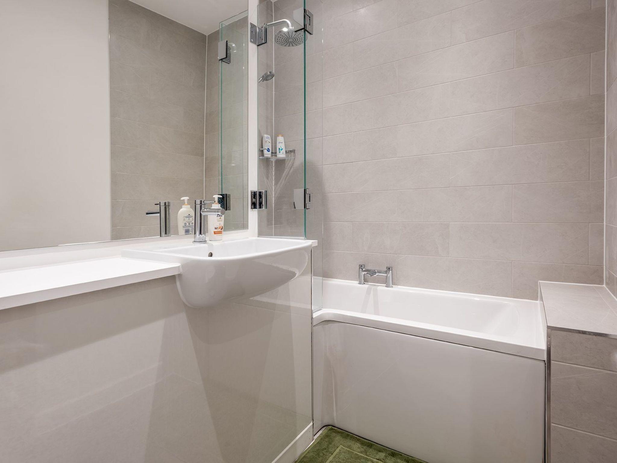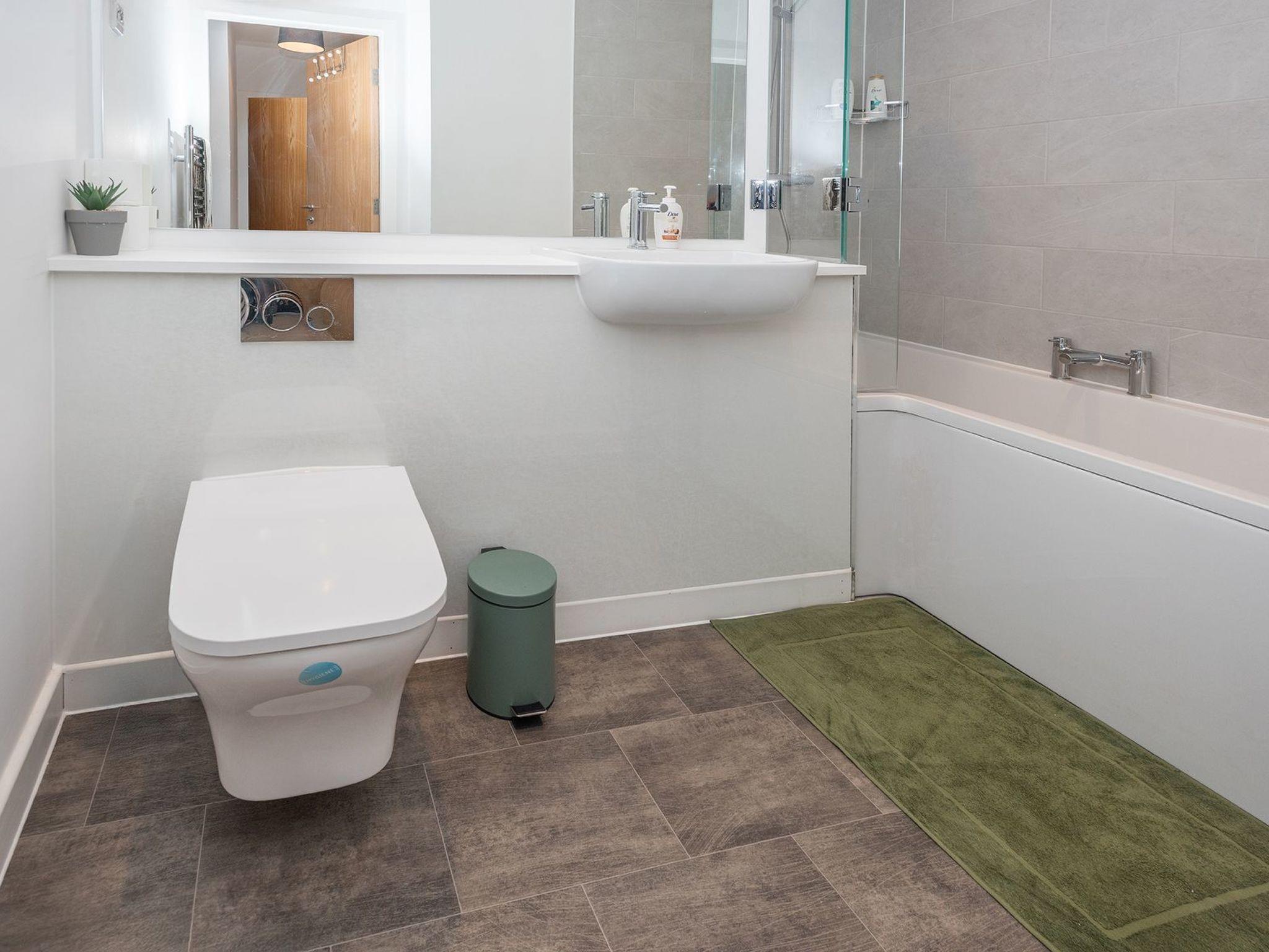 The lounge combines a living room, dining area and kitchen. The kitchen is fully stocked with all your basic cooking and food prep equipment. Relax in the living room, enjoy the Smart TV and speedy wi-fi throughout. The TV services are only the Smart services, no live TV is available at this time :)