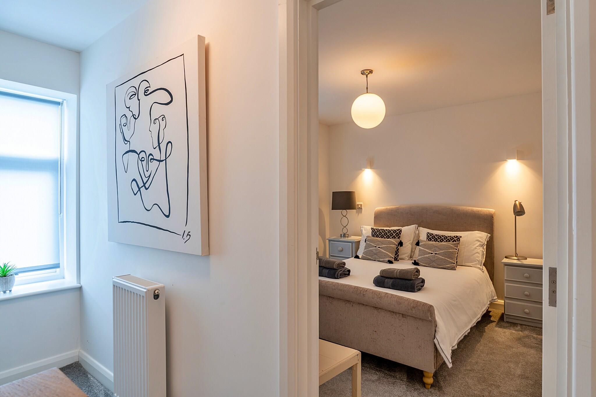 Oplev et stilfuldt tre-etagers tilflugtssted perfekt beliggende i hjertet af Saltash, ideelt for familier, par og venner, der er ivrige efter at udforske de fortryllende surfstrande, charmerende landsbyer og betagende kyststier i Cornwall og Devon. Fra det øjeblik du træder gennem den private gårdhave, vil du føle den indbydende charme af dette velindrettede hjem, klar til at være din base for eventyr. Gå op til første sals åbent stue, hvor et fuldt udstyret køkken venter, der inviterer dig til at piske lækre måltider sammen og skabe varige minder. Saml dig rundt om spisebordet til fælles måltider eller afslappede morgener med kaffe i morgenmadsbaren. Dette indbydende rum er designet til komfort og byder på et Smart TV og Wi-Fi for at holde dig forbundet. Det første af tre rummelige soveværelser, et smart moderne dobbeltværelse, er bekvemt placeret langs gangen, ved siden af ??et familiebadeværelse udstyret med både badekar og bruser - perfekt til at slappe af efter en dag med udforskning. På anden sal lokker den luksuriøse mastersuite, badet i naturligt lys og tilbyder en fantastisk udsigt over den nærliggende flod, hvilket sikrer rolige morgener og afslappende nætter. Komplet med et en-suite brusebad, er det et sandt tilflugtssted for afslapning. Et komfortabelt soveværelse med 2 enkeltsenge ligger i nærheden, hvilket gør det til et fremragende valg for familier med børn. Beliggende kun få øjeblikke fra havnefronten og den pulserende hovedgade med dejlige caféer, pubber og restauranter, fungerer dette charmerende hjem som en ideel indgang til at afdække områdets naturlige skønhed og rige historie. Og glem ikke, med Whitsand Bay kun 20 minutters kørsel væk, er du perfekt placeret til solbeskinnede dage på stranden - bare husk at pakke din spand og spade!