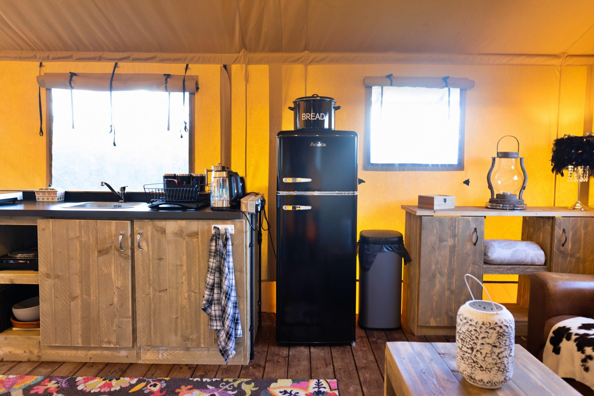 Gemt væk i det naturskønne Wiltshire-landskab tilbyder denne luksuriøse safarilodge en ideel flugt uden for nettet med moderne bekvemmeligheder. Lodgen kan komfortabelt rumme op til fire gæster, med en dobbeltseng og to enkeltsenge. Et privat spabad er den perfekte måde at slappe af efter en dag med udforskning. Rummet i åbent plan omfatter et indbydende udendørs opholdsområde med siddepladser i barstil, et fuldt udstyret køkken og en hyggelig opholdsstue med en brændeovn og bløde lædersofaer. Lodgen er ideel til par eller små grupper af venner, der leder efter et roligt, privat tilflugtssted. Lodgen er ideelt placeret mellem Melksham og Devizes og tilbyder nem adgang til butikker, supermarkeder og lokale restauranter. Kennet- og Avon-kanalen, kun en kort gåtur væk, byder på maleriske vandreture og udsigt langs trækstien, herunder de berømte Caen Hill Locks. Den nærliggende landsby Seend har et postkontor og en butik, mens Polshot tilbyder et udvalg af lokale råvarer. For historieentusiaster er National Trust-ejendommene Lacock Abbey, Great Chalfield Manor og Westwood Manor inden for rækkevidde, og Stonehenge er kun en halv times kørsel væk. Indvendigt er lodgen designet med komfort i tankerne og byder på et veludstyret køkken med køleskab med fryser, elkedel, brødrister og kogeplader. Opholdsstuen indeholder et spisebord til fire og rigelig plads til at slappe af. Soveværelsesområderne er indrettet med en rustik charme med luksuriøse senge, sengetøj og tæpper til en hyggelig og afslappende søvn.
