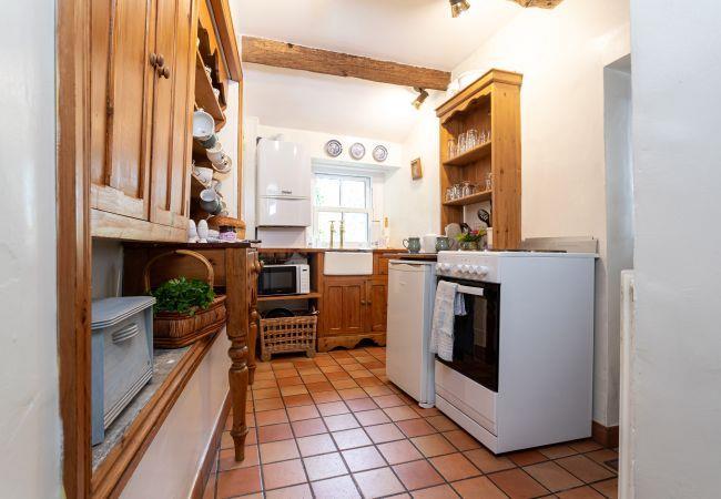 Head into the warm and inviting living room, where a beamed ceiling and a charming wood burner invite you to relax after a day of adventure. The cottage's country-style kitchen is well-equipped for preparing home-cooked meals and leads out to an enclosed back garden, ideal for a morning cup of coffee or unwinding in the evening sun.