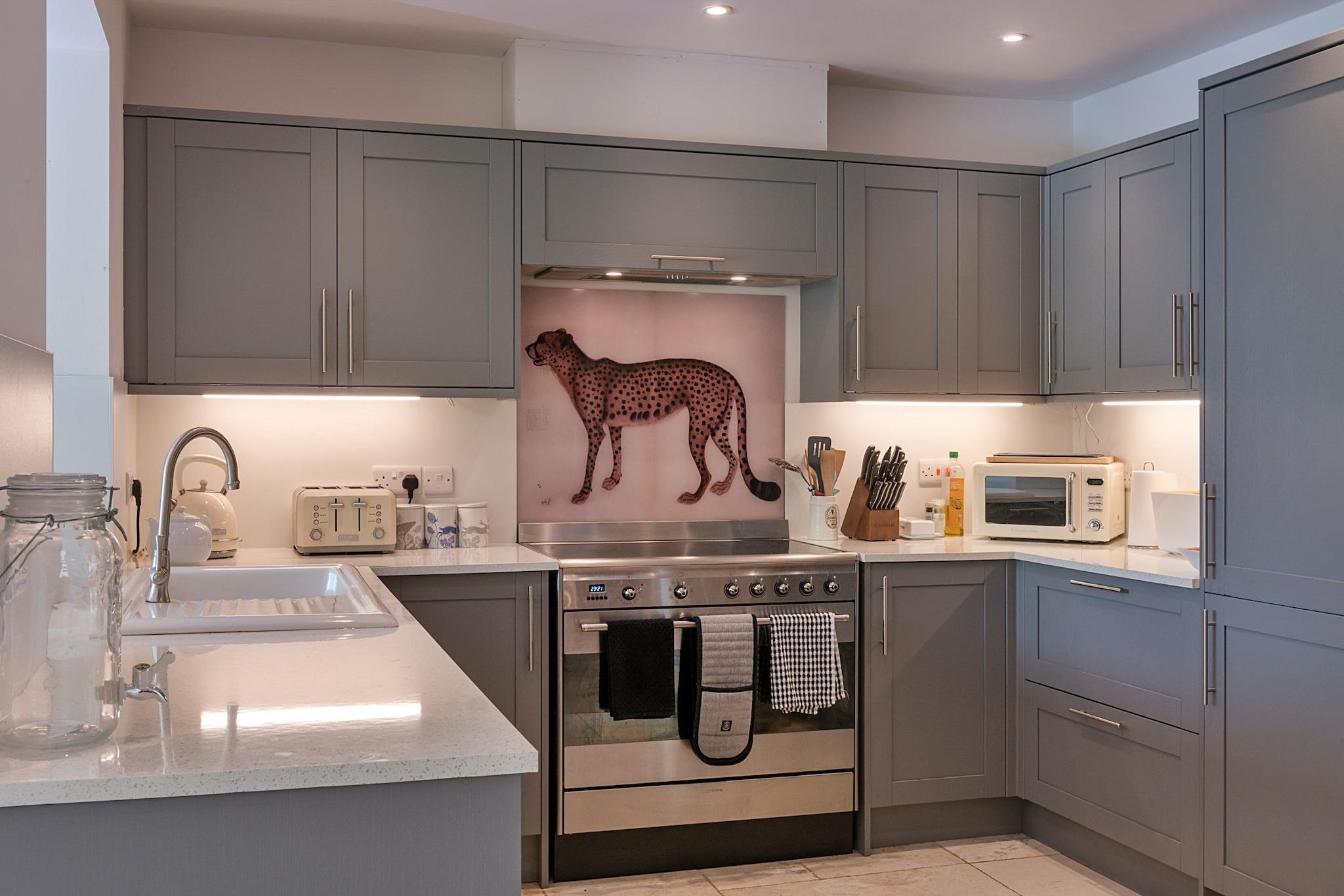 Beliggende i maleriske omgivelser tilbyder disse to smukt renoverede hytter et uovertruffent tilflugtssted for store grupper af familie og venner med plads til op til 16 gæster i ultimativ luksus. Med et indbydende spabad omgivet af terrasser, omfattende indhegnede haver og håndlavede lounge-siddepladser, fungerer denne ejendom som den perfekte baggrund for latterfyldte sammenkomster og elskede minder. Træd ind i den rummelige Hare Cottage, som komfortabelt har plads til 9 gæster. Her finder du et overdådigt kingsize-værelse med eget bad, et hyggeligt dobbeltværelse og et charmerende køjeværelse med en ekstra enkeltseng, suppleret med et familiebadeværelse for ekstra bekvemmelighed. Den nedenunder king soveværelset kommer med sit eget private badeværelse, hvilket sikrer privatliv og komfort for alle. Hjertet i Hare Cottage er dens ekspansive havestue, designet til socialisering og spisning. Med en dobbeltsidet brændeovn til at holde dig varm, et komfur til kulinariske lækkerier, et vinkøleskab til de festlige øjeblikke og et smart-tv parret med et sjovt bordfodboldområde, er det det ideelle sted for hele gruppen at nyde sammen. Fox Cottage, der kan rumme 7 gæster, udstråler en lignende charme med sine egne luksuriøse detaljer. Med et king-size soveværelse med eget bad, et hyggeligt dobbeltværelse og et dejligt køjeværelse med en enkeltseng, tilbyder denne hytte alt, hvad du behøver til afslappende nætter og behagelige morgener. Den hyggelige Fox Cottage skaber et magisk filmrum, perfekt for børn at fordybe sig i film, mens de voksne kan slappe af i deres eget fristed. Hver hytte er udsmykket med stoffer og møbler af høj kvalitet fra kendte designere som Farrow and Ball, Laura Ashley og Christian Lacroix, hvilket sikrer en elegant og moderne atmosfære under hele dit ophold. Udenfor er de store haver perfekte til solrige morgener med en kop kaffe, eftermiddagsgrill og aftener tilbragt i blød i boblebadet under en stjernehimmel. Med enge langs floden Severn kan gæsterne nyde den unikke mulighed for at fiske fra flodbredderne eller endda tage en forfriskende dukkert i naturens skønhed med vild svømning. Dette tilbagetog er ikke kun et sted at bo; det er en destination, hvor varige minder skabes, og hvor kvalitetstid værdsættes.