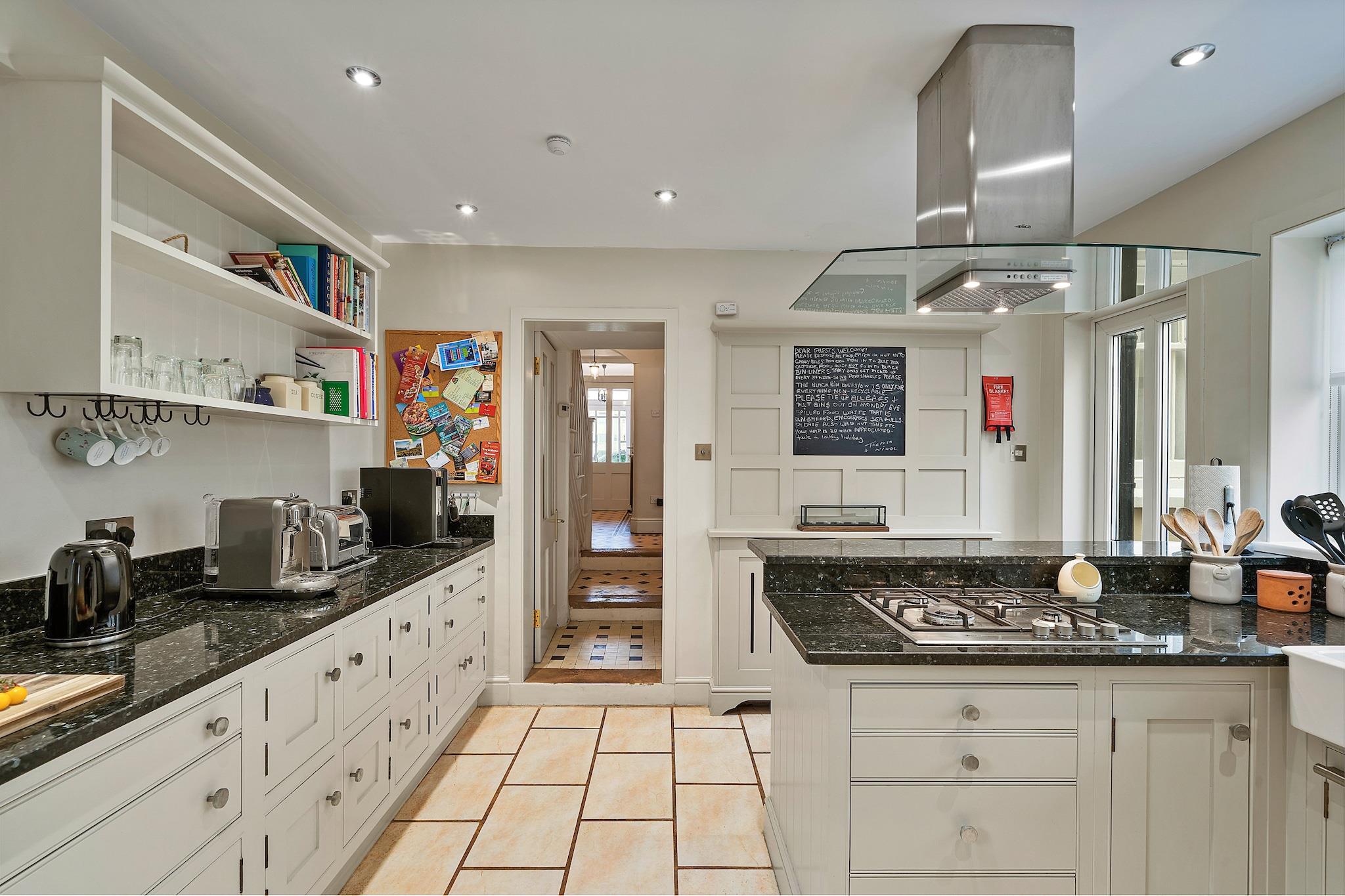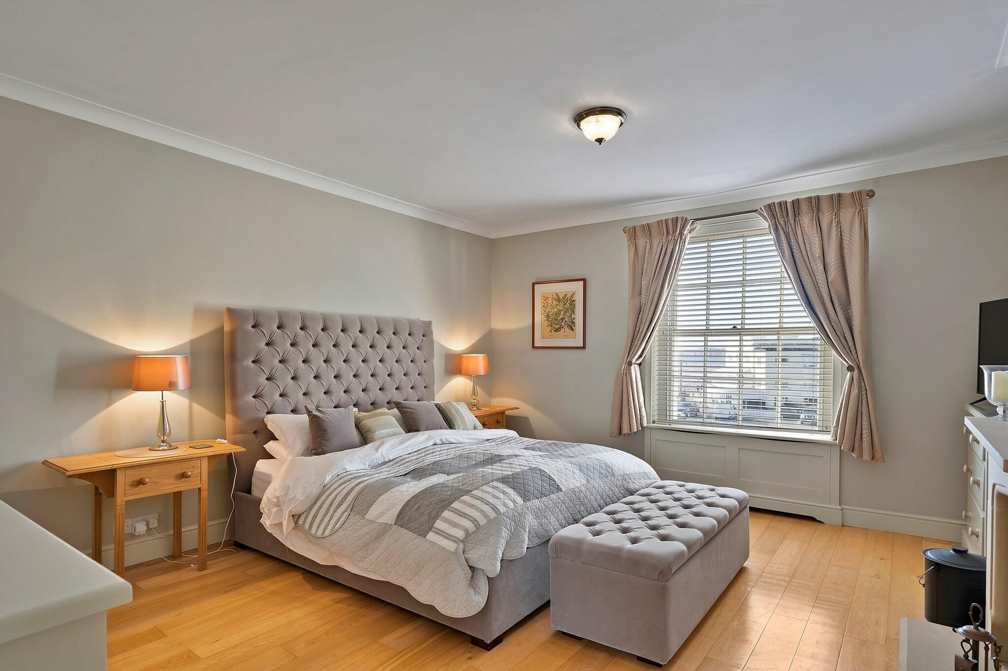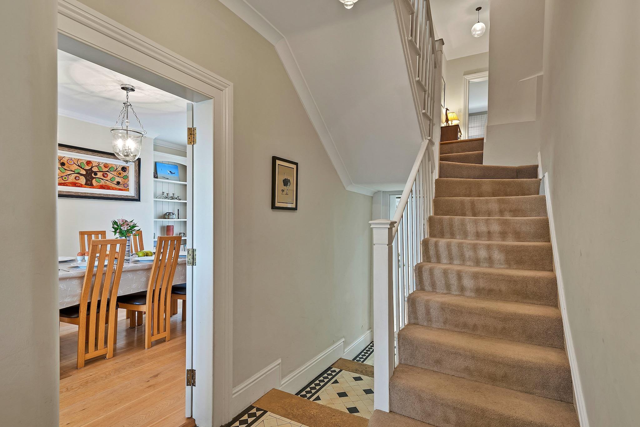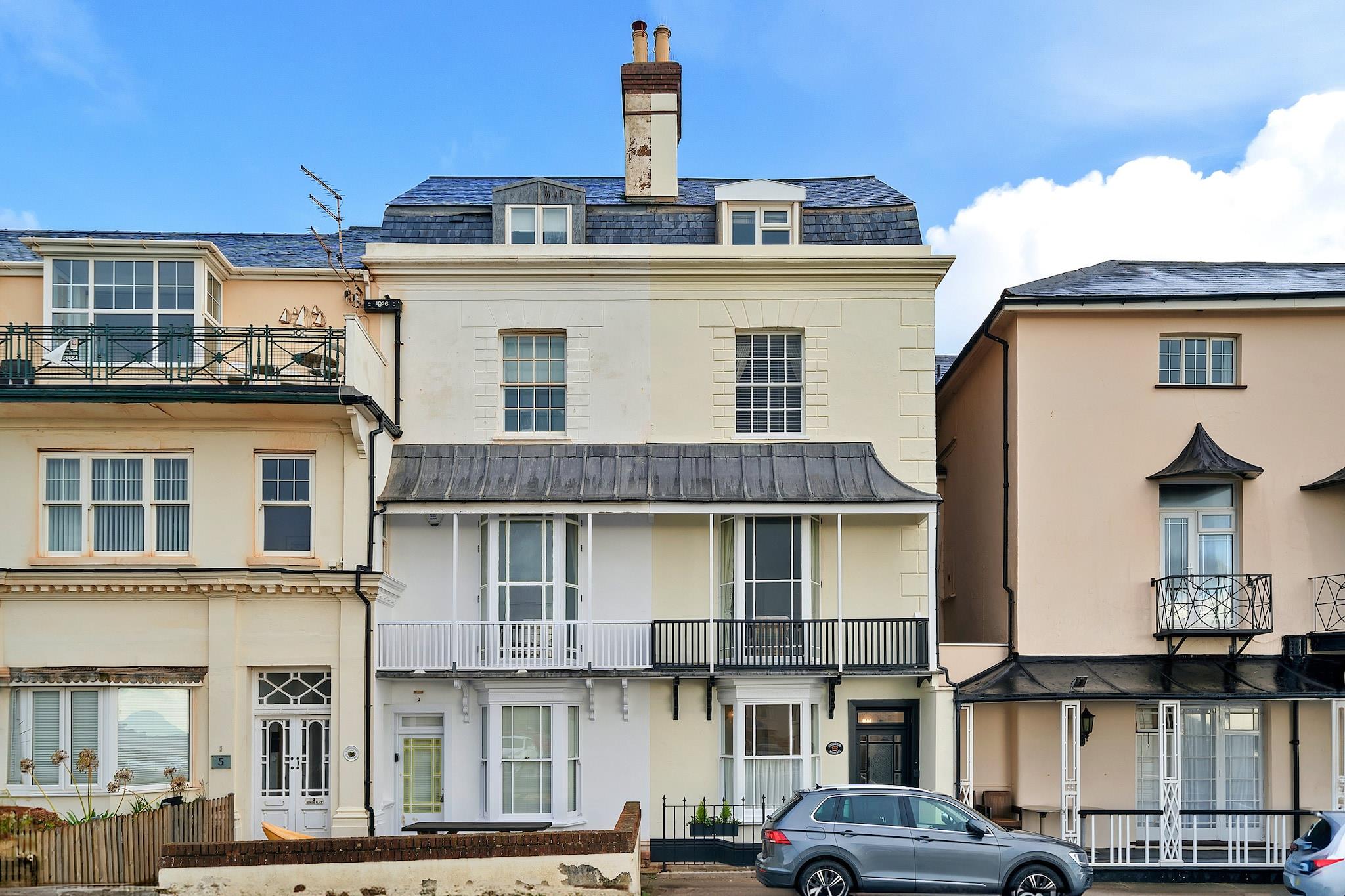 Denne elegante Regency-villa tilbyder et luksuriøst ophold med rummelig indkvartering, ideel til familier eller grupper. Med fire soveværelser, herunder tre king-size senge og en dobbeltseng, kan ejendommen komfortabelt rumme op til 8 gæster. Stueetagen i åbent plan indeholder en stilfuld opholdsstue med tv og Wi-Fi, et stort spisebord til 8 og et veludstyret køkken med separat bryggers. Gæsterne kan nyde den private lukkede terrasse, perfekt til at spise udendørs eller opbevare cykler. Ejendommen er også bekvemt beliggende med en reserveret parkeringsplads til én bil, hvilket sikrer nem adgang. Beliggende i den charmerende kystby Sidmouth, er denne ejendom perfekt placeret til at udforske områdets naturlige skønhed. Gæsterne kan nyde en fantastisk udsigt over Peak Hill og havet fra balkonen på første sal. Byen byder på en række lokale attraktioner, fra smukke strande til livlige butikker, caféer og restauranter. Ejendommen ligger kun en kort gåtur fra offentlige transportforbindelser, hvilket sikrer bekvem adgang til nærliggende områder af interesse. Ud over de charmerende opholdsrum har dette hjem et luksuriøst soveværelse med havudsigt og et en-suite brusebad. Den elegante indretning strækker sig hele vejen igennem, med originale detaljer såsom udsmykkede bugter og karakterfulde pejse. Villaen tilbyder også yderligere faciliteter såsom en vaskemaskine og en sikker parkeringsplads til et køretøj, der giver alle hjemmets bekvemmeligheder, mens den er omgivet af Sidmouths skønhed.