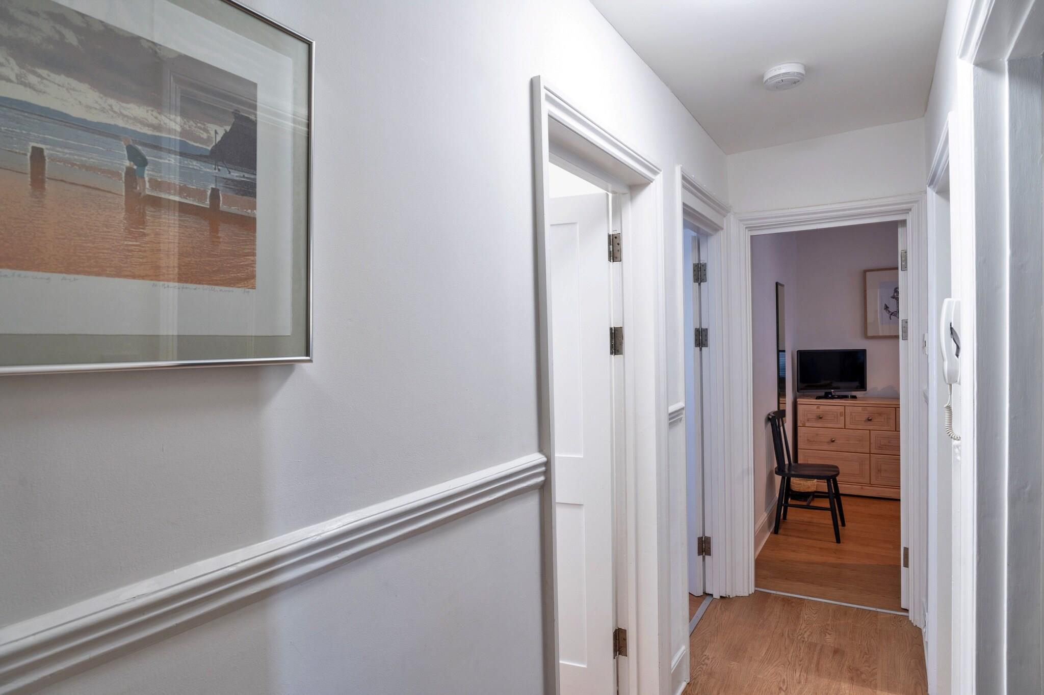 Flygt til en smukt indrettet lejlighed på første sal beliggende i den charmerende kystby Sidmouth. Dette stilfulde tilflugtssted fungerer som den perfekte base for en afslappende ferie, uanset om du leder efter solrige dage ved stranden eller et hyggeligt tilflugtssted i de køligere måneder. Med kystlinjen kun et stenkast væk, kan du nemt fordybe dig i skønheden og charmen ved denne klassiske kystdestination. Træd indenfor for at opdage et moderne opholdsrum, der er gennemtænkt designet til komfort og afslapning. Det lille, men fuldt udstyrede køkken har alt hvad du behøver for et ophold med selvforplejning, mens opholds- og spiseområdet i åbent plan er perfekt til at dele måltider og grin. Slap af i den komfortable sofa, hvor du kan nyde et udvalg af brætspil eller følge med i dine yndlingsprogrammer på smart-tv'et efter en dag med udforskning. Lejligheden rummer små familier eller vennegrupper og har et hovedsoveværelse med en overdådig super king-size seng sammen med et alsidigt andet soveværelse med to enkeltsenge med lynlås og link. Begge værelser fører til et smart badeværelse med bruser, håndvask og toilet. En tildelt parkeringsplads er tilgængelig på den nærliggende Bedford Lawn Car Park, kun en kort gåtur væk, med yderligere betalings- og visningsmuligheder i nærheden. Udforsk Sidmouths smukke strand, maleriske haver og en række uafhængige butikker og spisesteder, mens du nyder den dejlige atmosfære i denne fantastiske kystperle.
