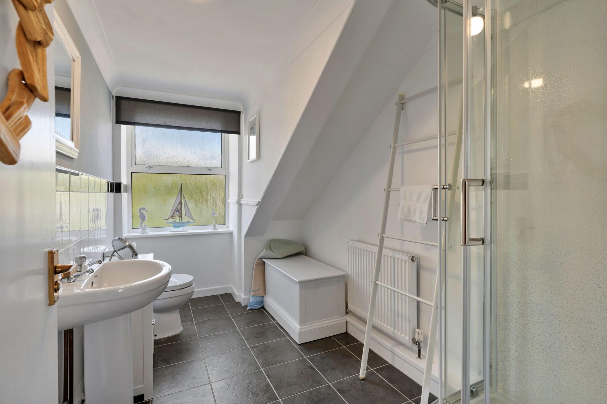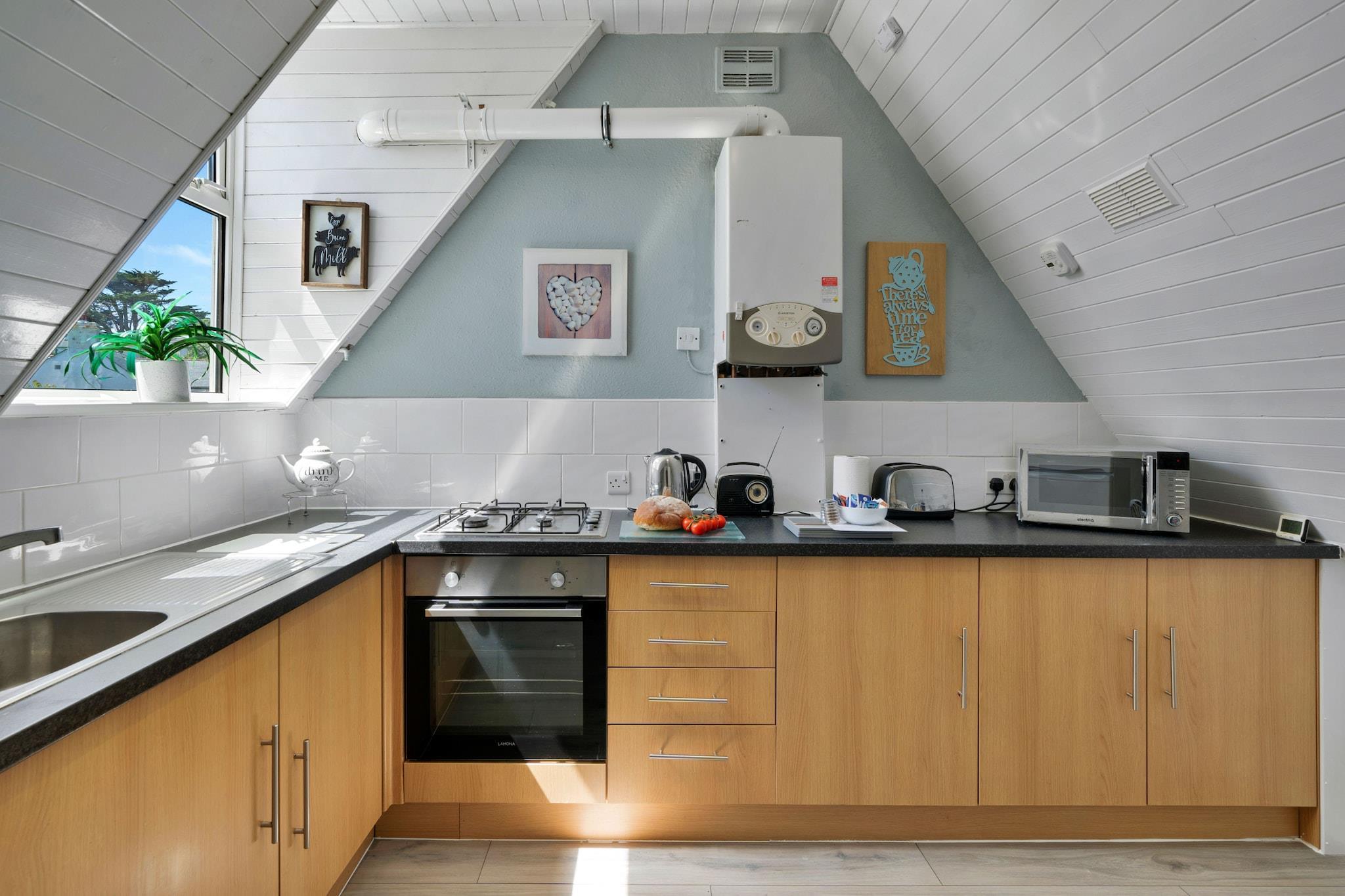 Introduktion af en komfortabel 2-værelses lejlighed med betagende havudsigt, der strækker sig over Carbis Bay til Gwithians gyldne sandstrande. Denne populære destination, der er kendt for sin perfekte naturlige belysning, tiltrækker både kunstnere og turister og forvandler havet til en elektrisk turkisblå. Familier vil sætte pris på den centrale beliggenhed og hjemmelignende bekvemmeligheder, herunder et veludstyret køkken med elektrisk ovn, gaskomfur, mikroovn og opvaskemaskine. Det hyggelige køkkenbord er ideelt til at nyde morgenkaffen sammen med friskbagte kager fra lokale håndværksbagerier, med et omfattende udvalg af spisemuligheder kun få skridt væk. Det store soveværelse med dobbeltseng har malerisk udsigt, der strækker sig til Godrevy Head, mens det andet køjeværelse rummer yderligere gæster. Slap af i den rummelige stue/spisestue, mens du nyder den fantastiske udsigt over bugten, eller nyd en film på det 43" digitale fladskærms-smart-tv. Familiebadeværelset med strandtema inkluderer bruseniche, toilet og håndvask, med den ekstra bekvemmelighed af en vaskemaskine/tørretumbler i køkkenet. Perfekt beliggende kun 300 meter fra Porthminster Beach, dette beskyttede sandstrand er ideelt til familieudflugter. Udforsk de charmerende gyder fyldt med uafhængige butikker, historiske bygninger og gallerier i verdensklasse, herunder det berømte Tate Gallery og The Barbara Hepworth Museum. Besøg den lokale chokoladefabrik, 'I Should Coco', for en sød lækkerbisken for workshops eller lækker chokolade med hjem. Lejligheden inkluderer en udpeget parkeringsplads og udendørs picnicbænke, hvilket giver et perfekt tilflugtssted for livet ved havet. Bemærk venligst, at adgang er via trapper, som muligvis ikke er egnet for personer med nedsat mobilitet.