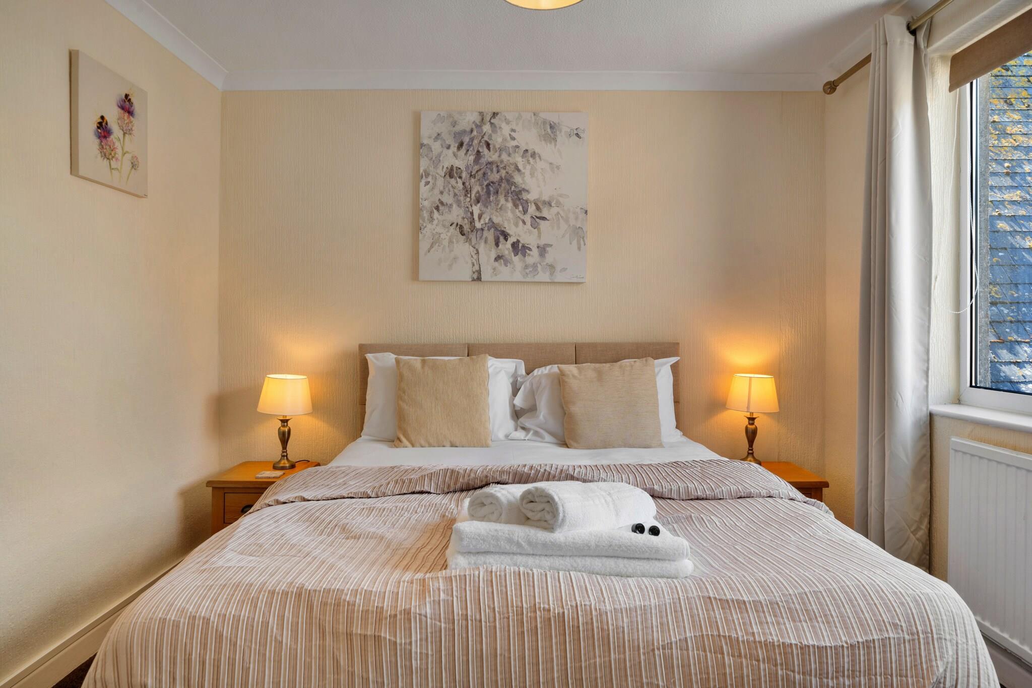 Velkommen til denne komfortable to-værelses lejlighed beliggende i hjertet af St Ives, kun få skridt væk fra den fantastiske Porthminster Beach og byens centrum. Lejligheden kan rumme op til fire gæster og har et en-suite dobbeltværelse med badekar, et yderligere soveværelse med 2 enkeltsenge og et familiebadeværelse udstyret med bruser, håndvask og toilet. Det rummelige køkken leveres komplet med moderne apparater, herunder køleskab/fryser, opvaskemaskine, ovn og vaskemaskine/tørretumbler samt en hyggelig spiseplads til fire. Loungen tilbyder et perfekt spisebord med fascinerende udsigt over bugten til Gwithians gyldne sand. Gæsterne kan slappe af i den komfortable sofa eller krølle sig sammen med en bog i den lun lænestol, hvilket gør det til et indbydende sted at slappe af efter en dag med udforskning. St Ives, en charmerende kornisk fiskerlandsby, er fyldt med fantastiske restauranter, håndværksbagerier og uafhængige butikker, der giver en dejlig ramme for at opdage unikke souvenirs eller nyde friskbagte varer. Med praktisk parkering til en bil, er lejligheden kun 650 meter fra togstationen, hvilket giver nem adgang til nærliggende attraktioner såsom det majestætiske St Michael's Mount og Minack Theatre, der ligger på klipperne. Nyd picnic bænke på en udendørs terrasse; dog er der adgang til lejligheden via trapper, hvilket muligvis ikke er egnet for gæster med nedsat mobilitet. Omfavn det fantastiske kystliv og kunstneriske kultur, som St Ives har at tilbyde!