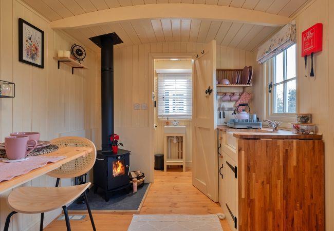 Relax in the peaceful Northamptonshire countryside in our charming Shepherd's Hut, the perfect glamping retreat just a short drive from the Cotswolds. Enjoy the outdoor seating and dining area, cosy up by the wood burner on chilly evenings, and bring your pets along to our pet-friendly space. Free parking is available right by your hut for added convenience.