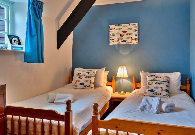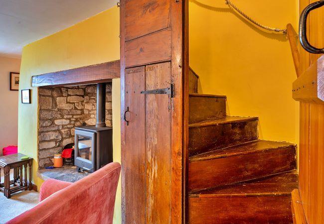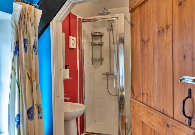 Head up the original cottage stairs to two spacious bedrooms, a double room with ensuite shower bathroom, and a second twin room. The property has one ground floor family bathroom with a shower, basin, and WC.