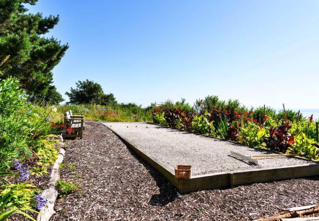 Outside, a boules court overlooks the Old Vicarage Vineyard, with ample seating and a sandpit for younger guests. The property boasts a large lawned garden with a relaxed sitting-out area, complete with garden furniture, a pizza oven, and a BBQ—ideal for outdoor dining and entertaining—along with private parking for up to eight cars.