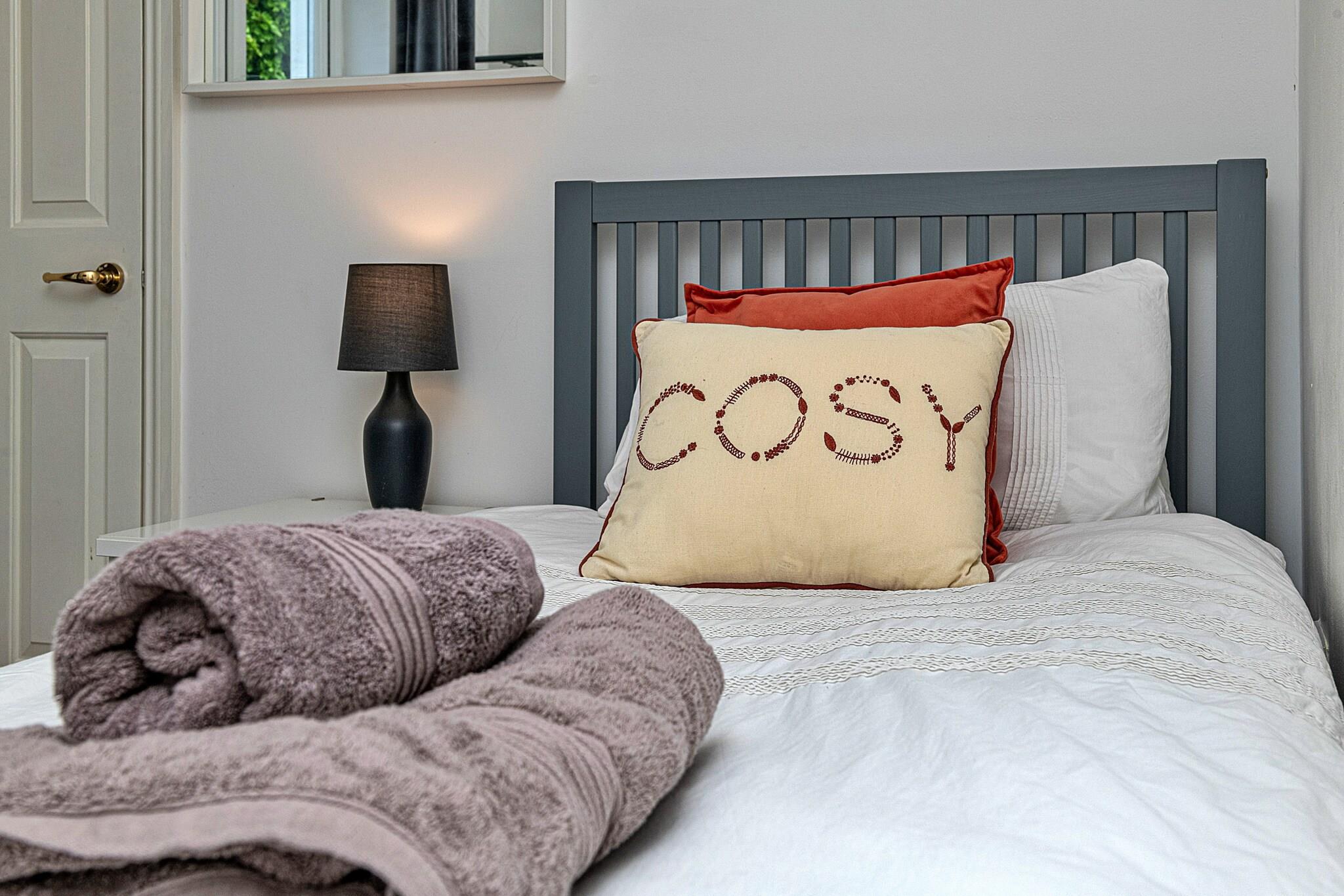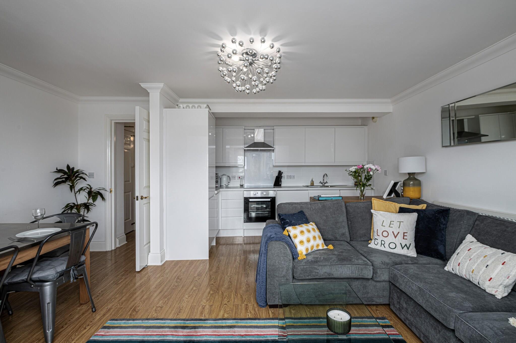 Denne smukt møblerede 3-værelses lejlighed tilbyder et ideelt ophold for familier og venner med plads til op til fem personer. Den har to kingsize-senge (hvoraf den ene kan omdannes til tvillinger) og en enkeltseng. Gæsterne kan nyde komforten ved et rummeligt opholdsområde med sofa, køkken i åbent plan og spiseplads. Lejligheden har også en stor balkon, hvor besøgende kan slappe af og nyde en fjern havudsigt. Ejendommen omfatter fælles faciliteter såsom en indendørs swimmingpool og fitnesscenter, begge tilgængelige gratis, hvilket gør det til et fremragende valg for dem, der søger både afslapning og fitness. Bemærk venligst, at kæledyr ikke er tilladt. Beliggende i den charmerende kystby Tenby, tilbyder lejligheden nem adgang til en række attraktioner. Den berømte South Beach, kun en halv kilometer væk, er et perfekt sted for en svømmetur eller en fredelig gåtur. Gæsterne kan udforske de smalle brostensbelagte gader i Tenby, der er fyldt med hyggelige butikker, caféer og pubber. For dem, der er interesseret i udendørs aktiviteter, begynder Pembrokeshire Coastal Path i nærheden, og tilbyder en betagende udsigt over Caldey Island. Derudover er havneområdet et knudepunkt for bådture, herunder fiskeekspeditioner og besøg på nærliggende øer. Offentlig transport er bekvemt tæt på, med bus- og togstationer let tilgængelige. Lejligheden er udstyret med et velassorteret køkken, ideelt for dem, der ønsker at forplejning under deres ophold. Det inkluderer vigtige apparater såsom en opvaskemaskine, vaskemaskine, komfur og ovn. For ekstra bekvemmelighed er der også et familiebadeværelse med bruser over badekarret og et ensuite brusebadeværelse i det store soveværelse.
