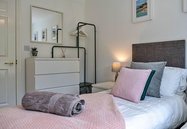 Y Lle Hapus (The Happy Place) is a beautifully furnished three-bedroom apartment overlooking Tenby with distant sea views. The property has the added advantage of a shared, indoor swimming pool and gym which guests can use free of charge during their stay.