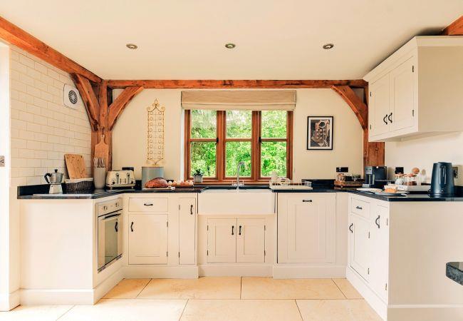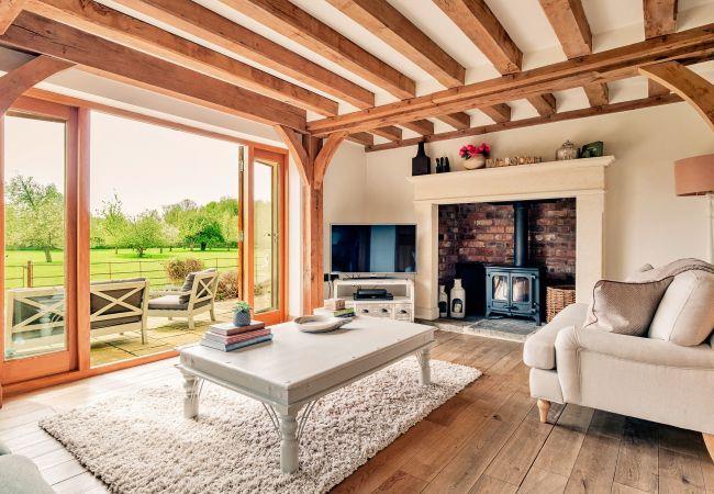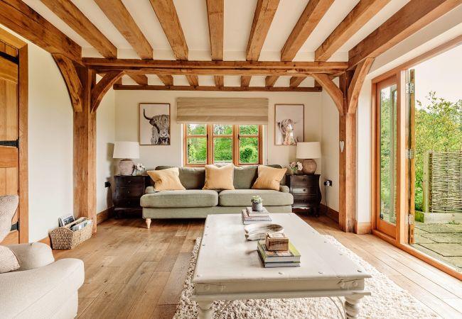 Step inside this beautifully crafted oak-framed cottage and be wowed by the luxurious blend of natural materials—solid oak and limestone floors and exposed beams add character to every room. The bespoke kitchen features an Aga for that true country feel, while the stylish living room has a cosy wood burner and bi-fold doors leading out onto the patio. Each bedroom comes with a flatscreen Smart TV and a private en-suite, complete with freestanding baths and invigorating power showers. One of the bedrooms even connects to a baby suite, and there's a dedicated family/playroom to keep the kids entertained.